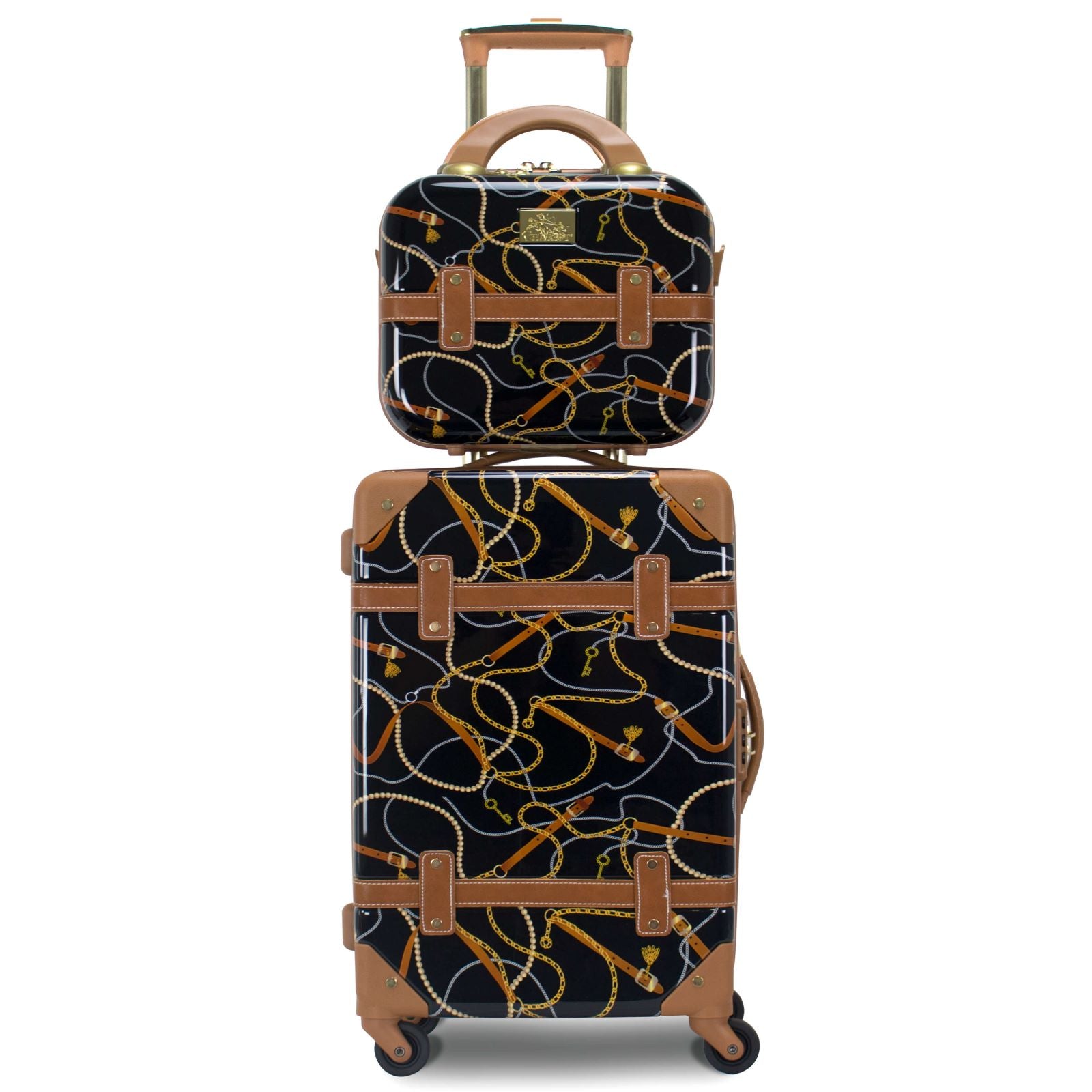 The Chariot Regal Collection is a flawless combination where fashion meets function. Designed from the inside out the vintage luxury trunk features 360 glide wheels, leather trim, a TSA lock, carry handles, and a retractable handle system. Its fully lined interior features a zipper compartment, tie-down straps, and a zipper accessory pocket. The beauty case features a zipper divider, a vanity mirror, accessory pockets, a detachable shoulder strap, and a rear strap that slides over the luggage handle.
