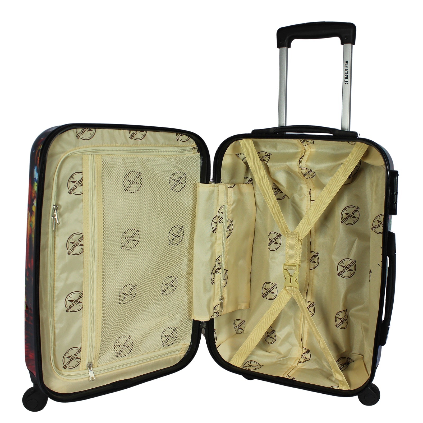 Durable polycarbonate shell construction, Telescopic push-button handle system, Easy glide spinner wheels, expands 2 inches for more packing capacity, TSL lock or Regular combination lock available in most styles