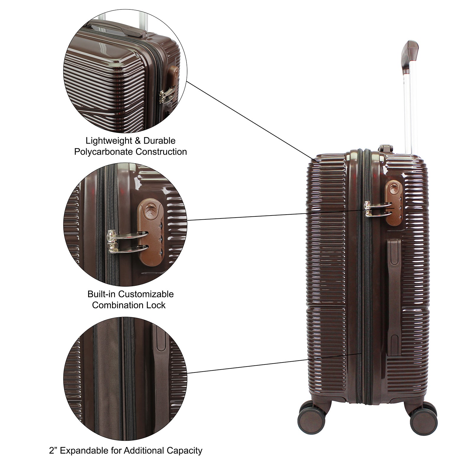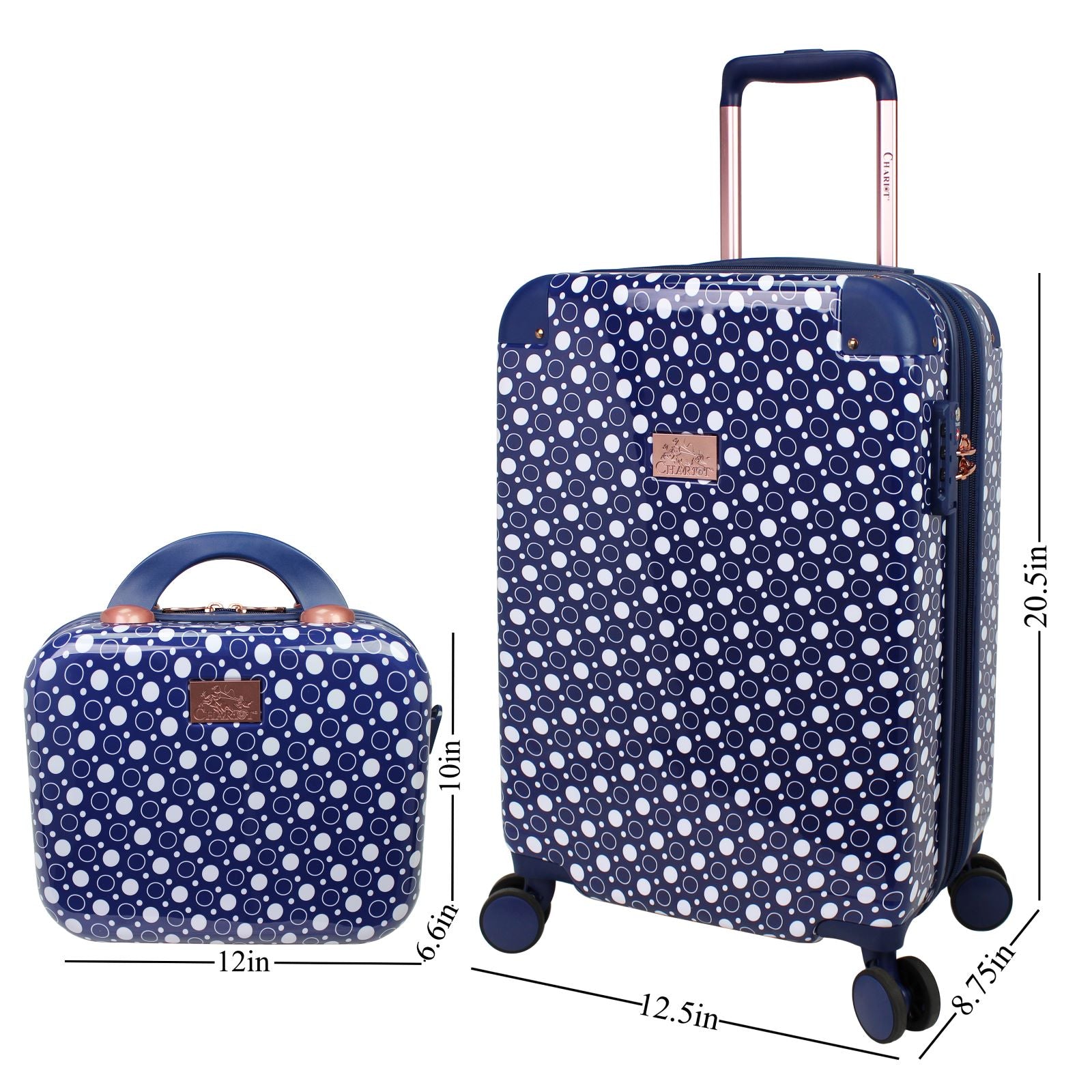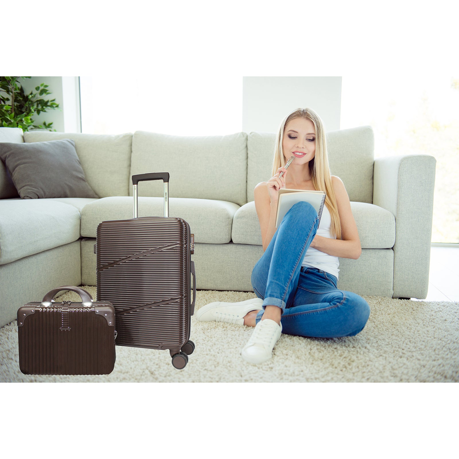 Travel smarter and in style with this 2-piece Carry-On Luggage and Cosmetic Case Set. Designed with convenience and durability in mind, the sleek polycarbonate shell offers lightweight strength and impact resistance. The carry-on features smooth-gliding spinner wheels, a telescopic push-button handle, and expands an extra 2 inches to accommodate more packing needs. Inside, a fully lined interior includes a zippered divider, accessory or shoe pockets(depending on the style), and adjustable straps to keep your belongings secure. The matching beauty case easily slides over the luggage handle and includes zippered compartments and accessory pockets to keep essentials organized. Ideal for weekend getaways or business trips, this travel set blends function and fashion seamlessly.