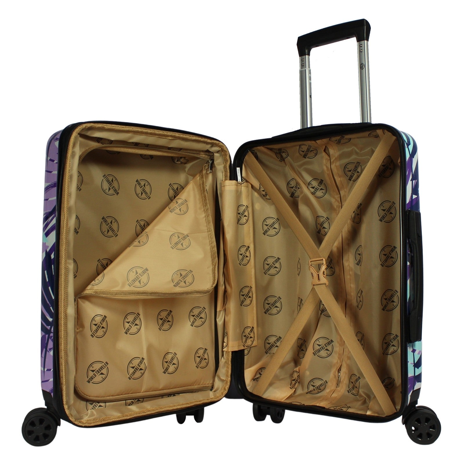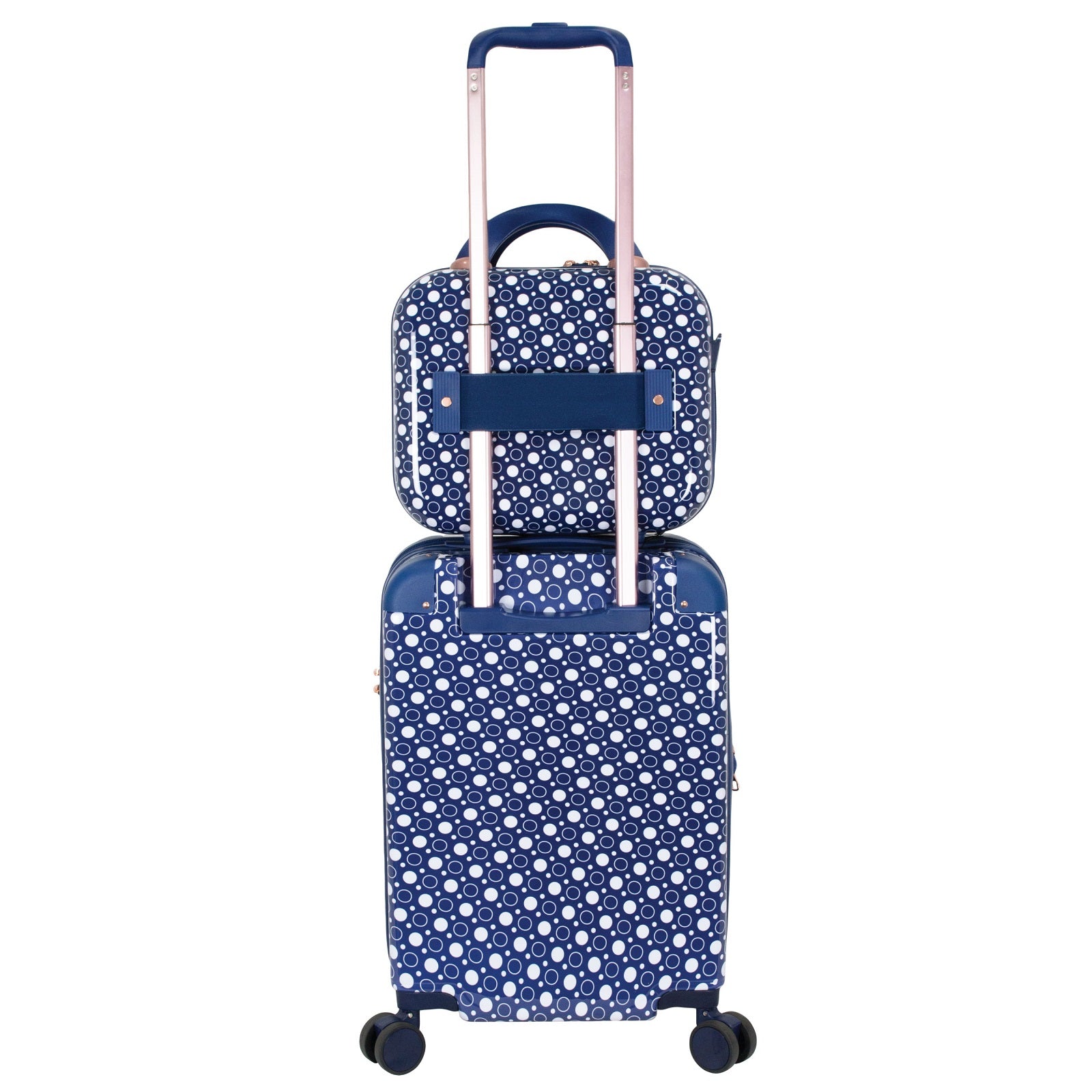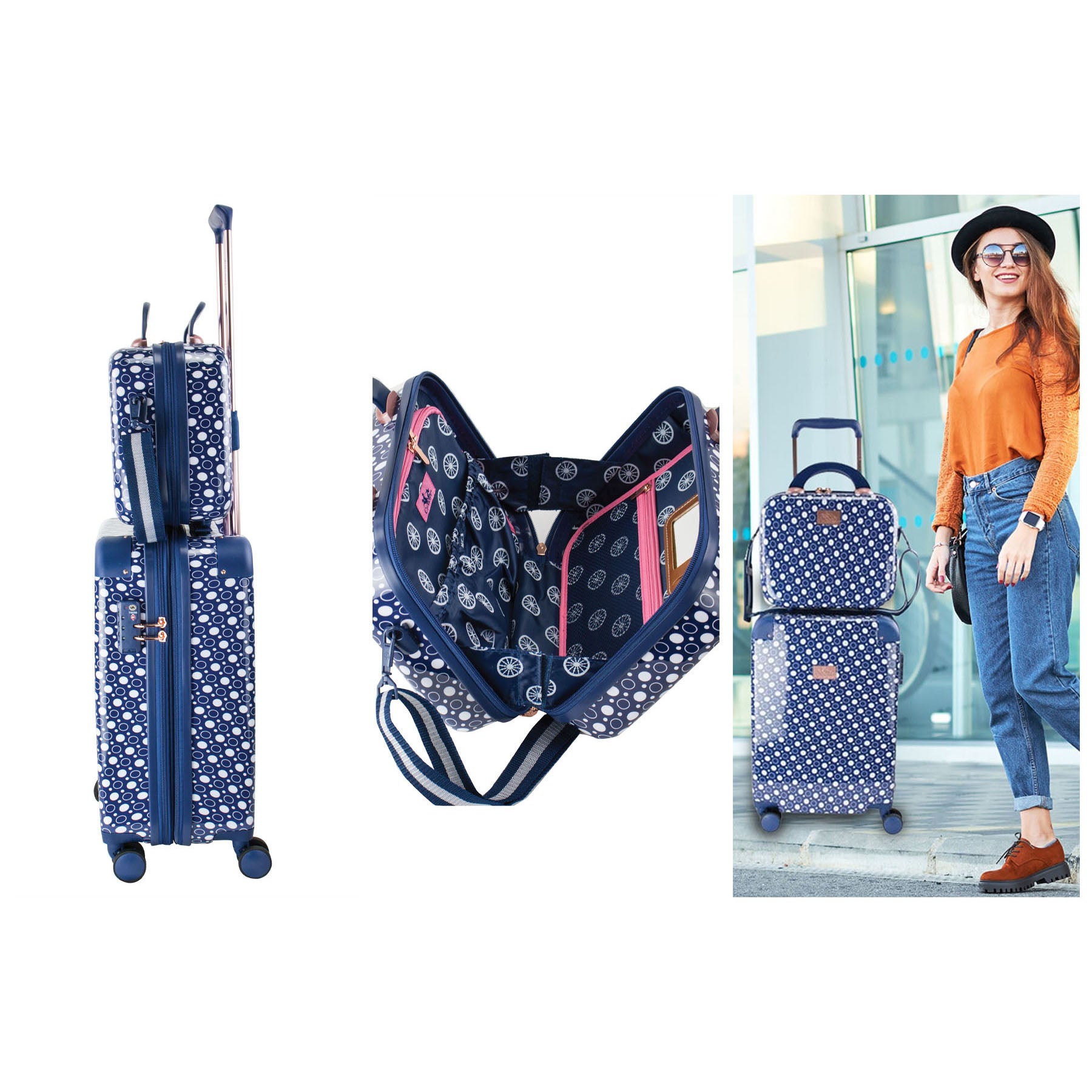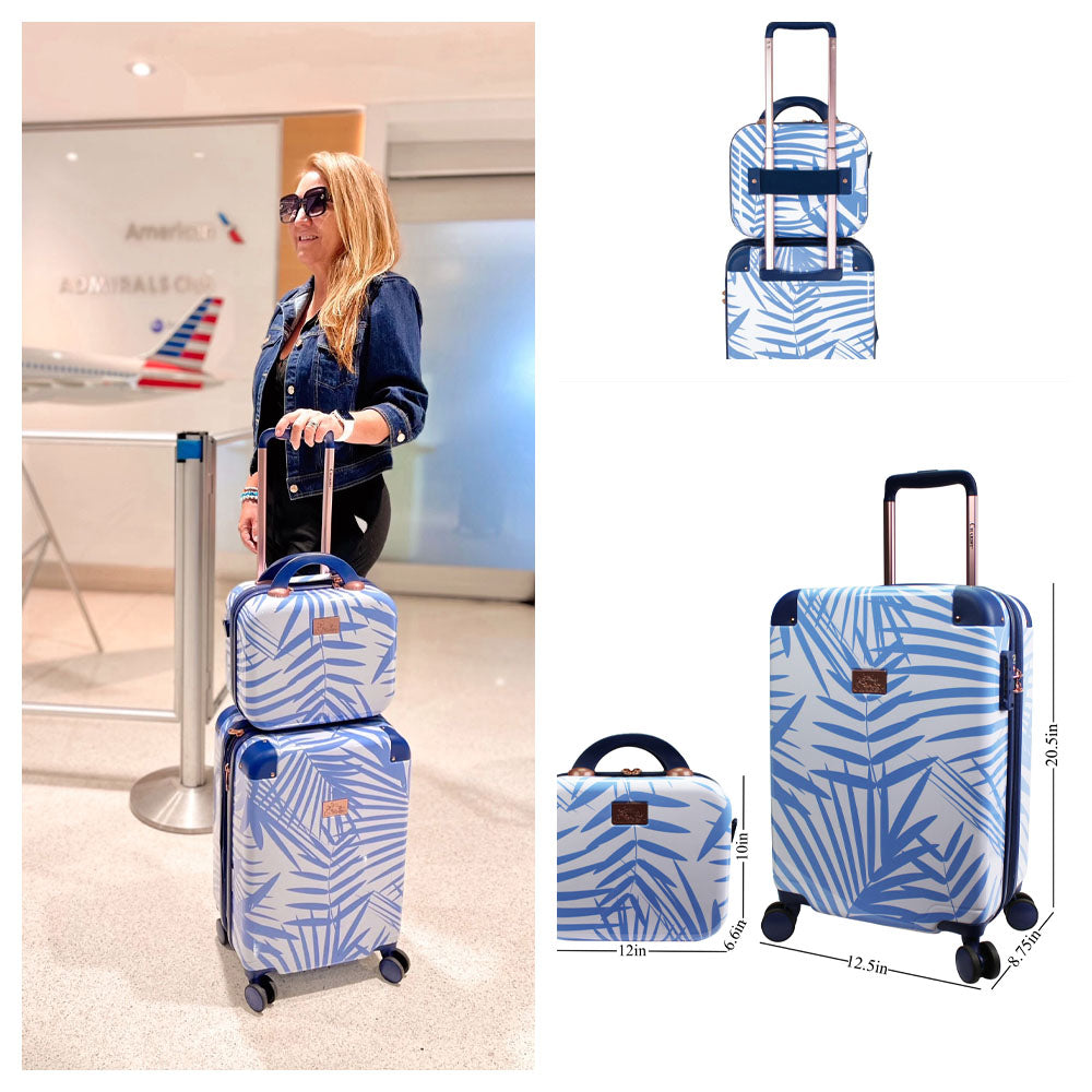 Travel smarter and in style with this 2-piece Carry-On Luggage and Cosmetic Case Set. Designed with convenience and durability in mind, the sleek polycarbonate shell offers lightweight strength and impact resistance. The carry-on features smooth-gliding spinner wheels, a telescopic push-button handle, and expands an extra 2 inches to accommodate more packing needs. Inside, a fully lined interior includes a zippered divider, accessory or shoe pockets(depending on the style), and adjustable straps to keep your belongings secure. The matching beauty case easily slides over the luggage handle and includes zippered compartments and accessory pockets to keep essentials organized. Ideal for weekend getaways or business trips, this travel set blends function and fashion seamlessly.