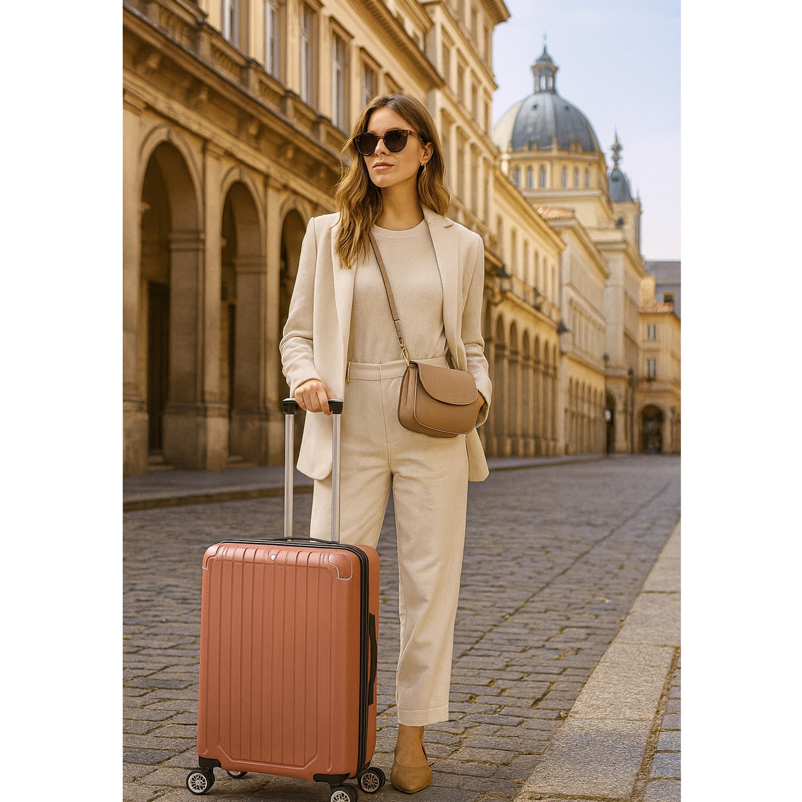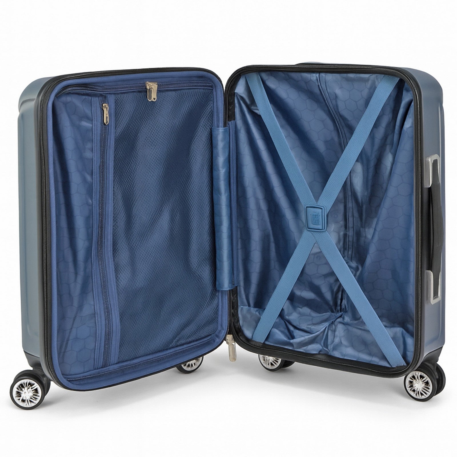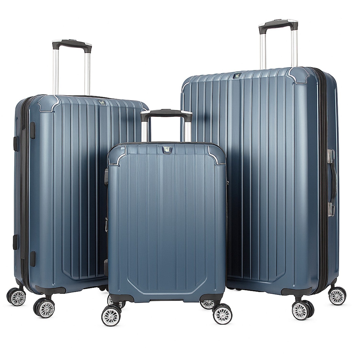 Designed for today’s modern traveler, this sleek set is constructed with durable, scratch-resistant ABS material that withstands the rigors of travel. The deluxe 8-wheel spinner system allows smooth 360-degree mobility, making it easy to glide through airports, stations, and city streets.