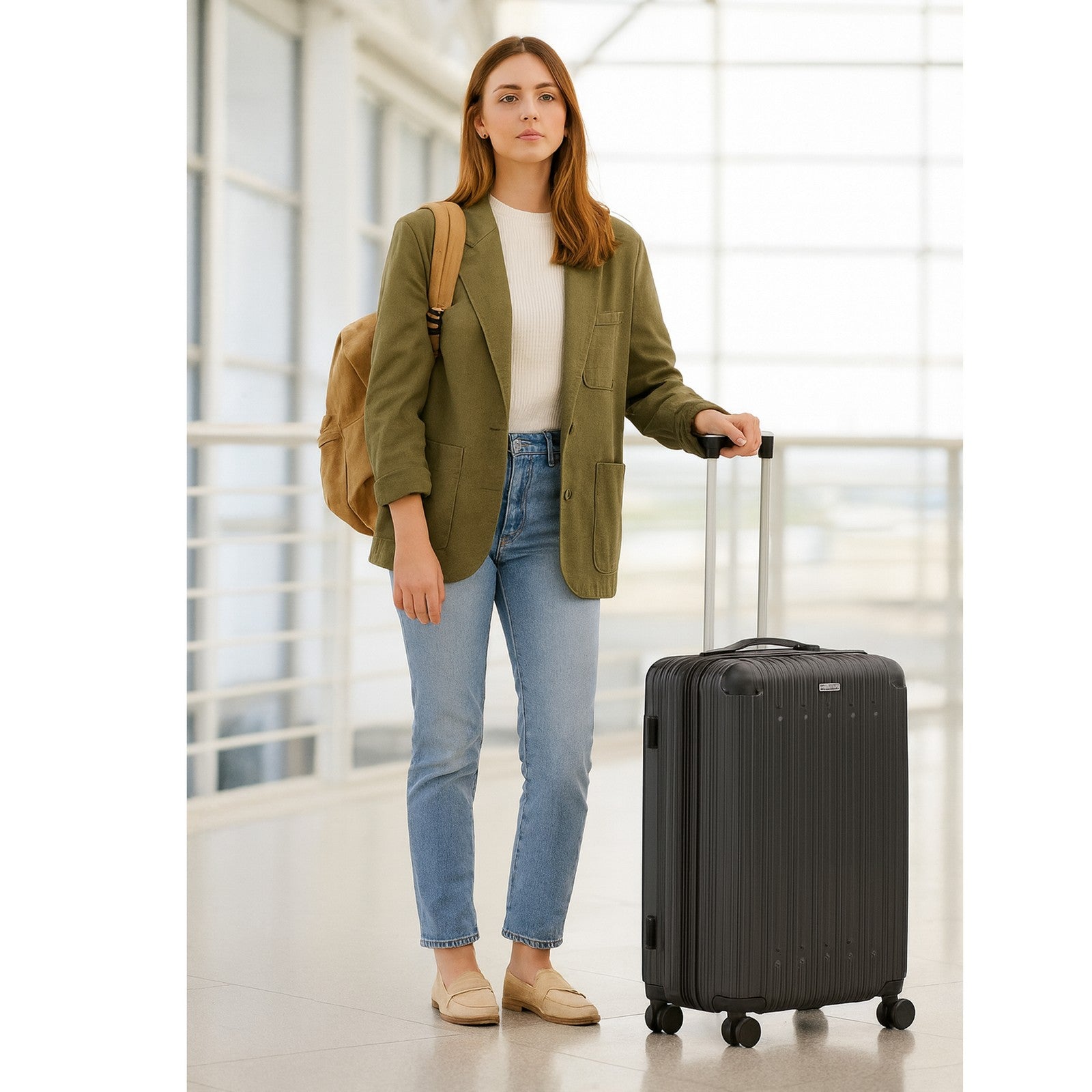 Designed for both durability and style, this set is crafted from scratch-resistant ABS material to withstand the demands of modern travel while maintaining a sleek look. The deluxe 8-wheel spinner system ensures smooth 360-degree navigation, making it effortless to maneuver through busy airports and city streets.
