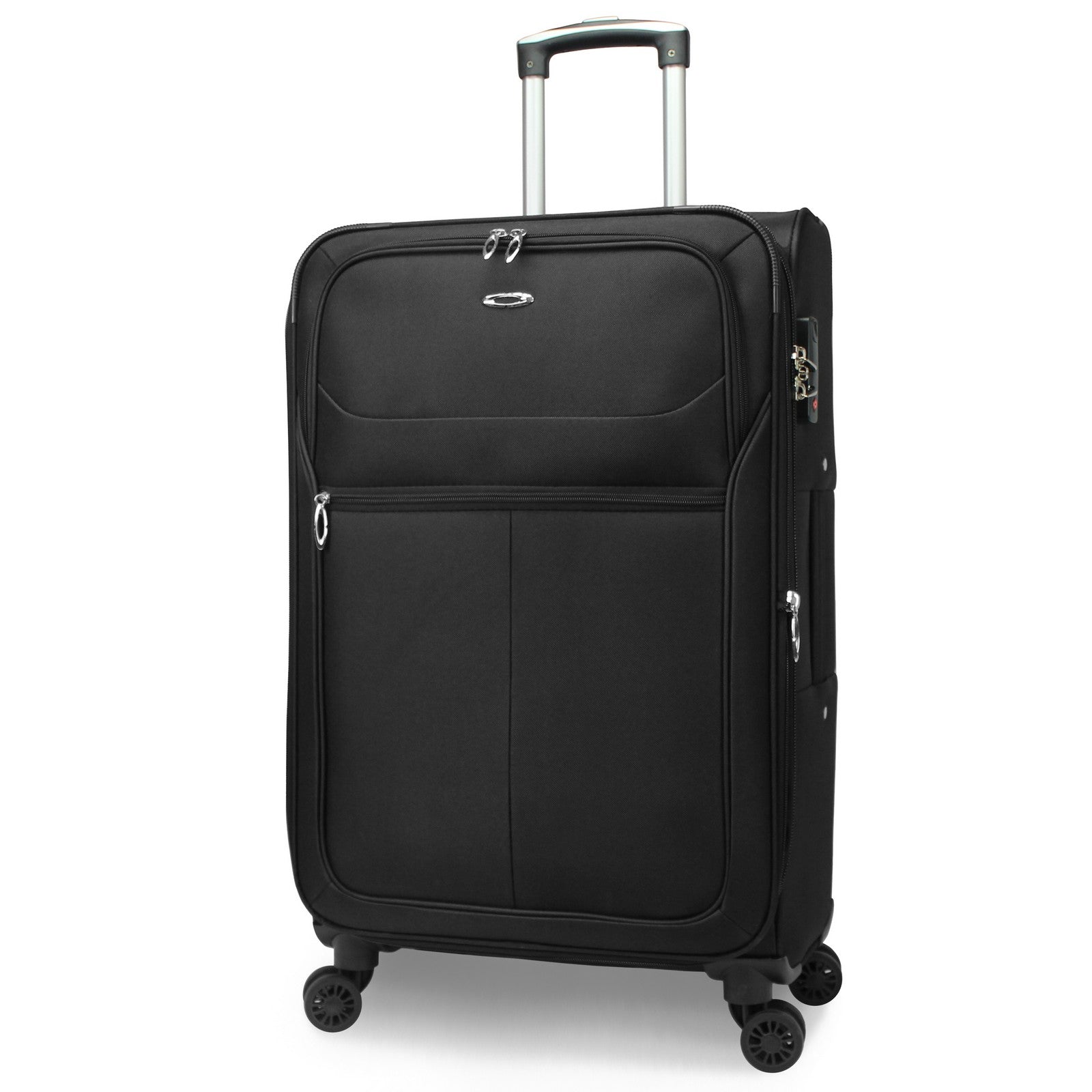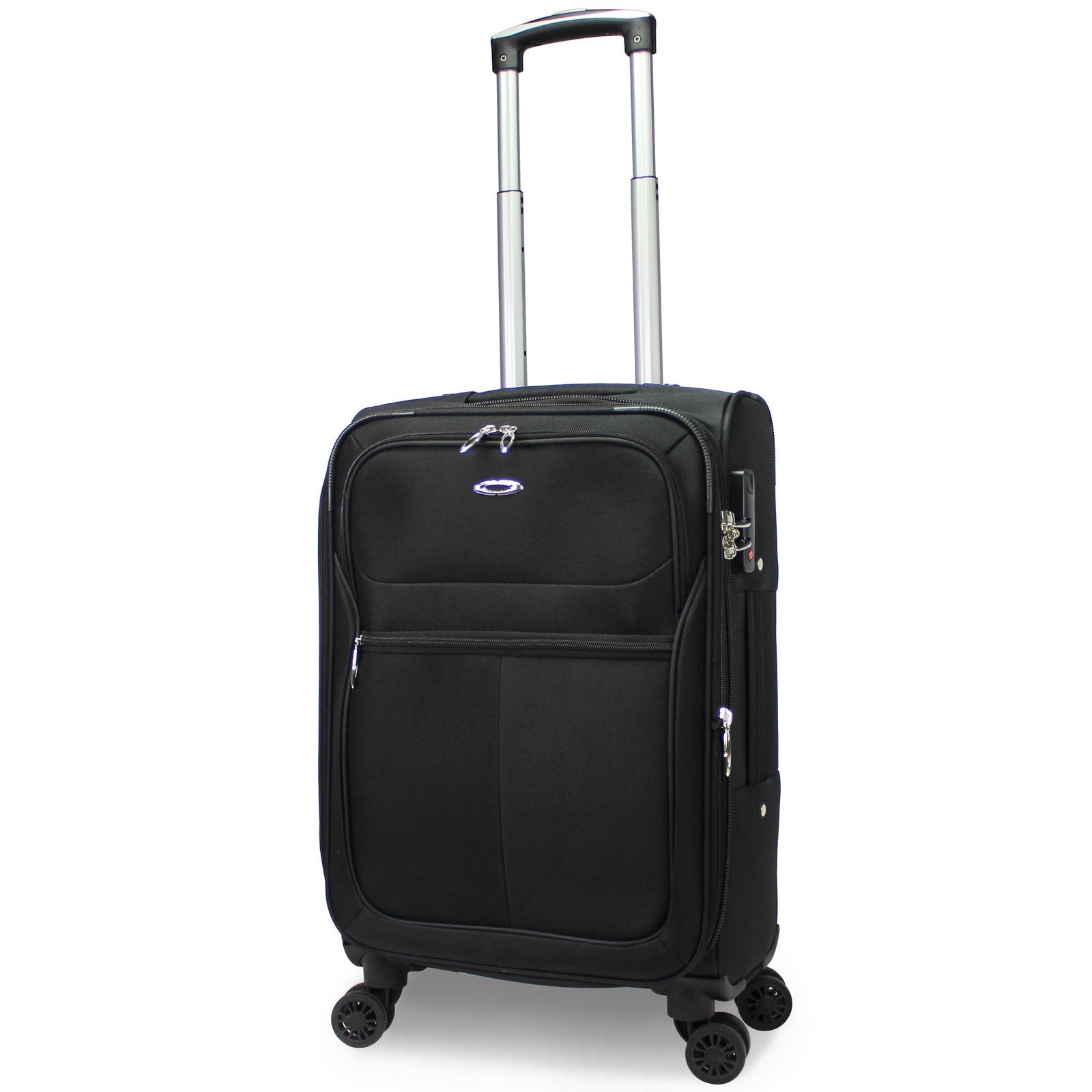 Durable Polyester construction, 360-degree spinner wheels, Telescopic push-button trolley handle system, Two front zipper pockets