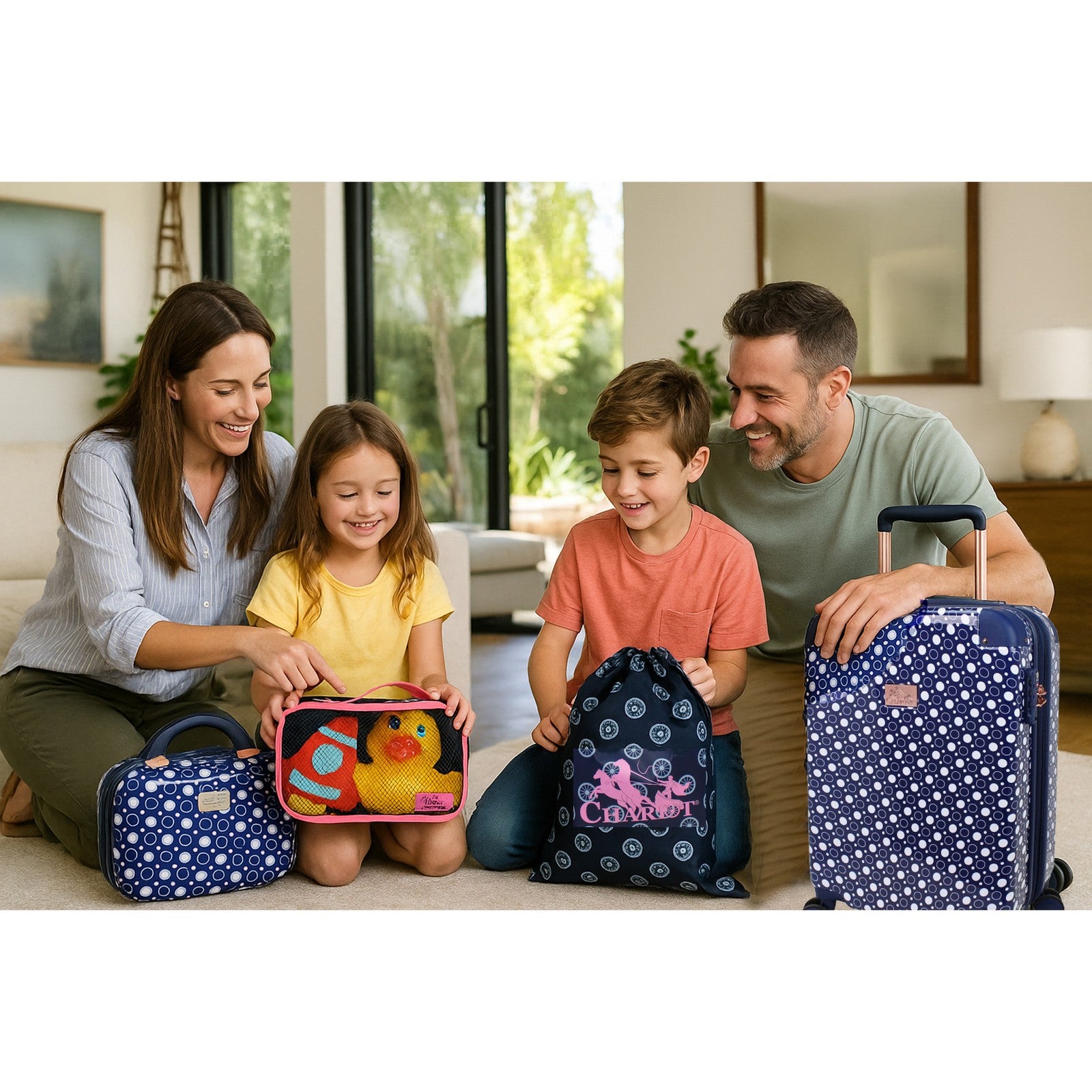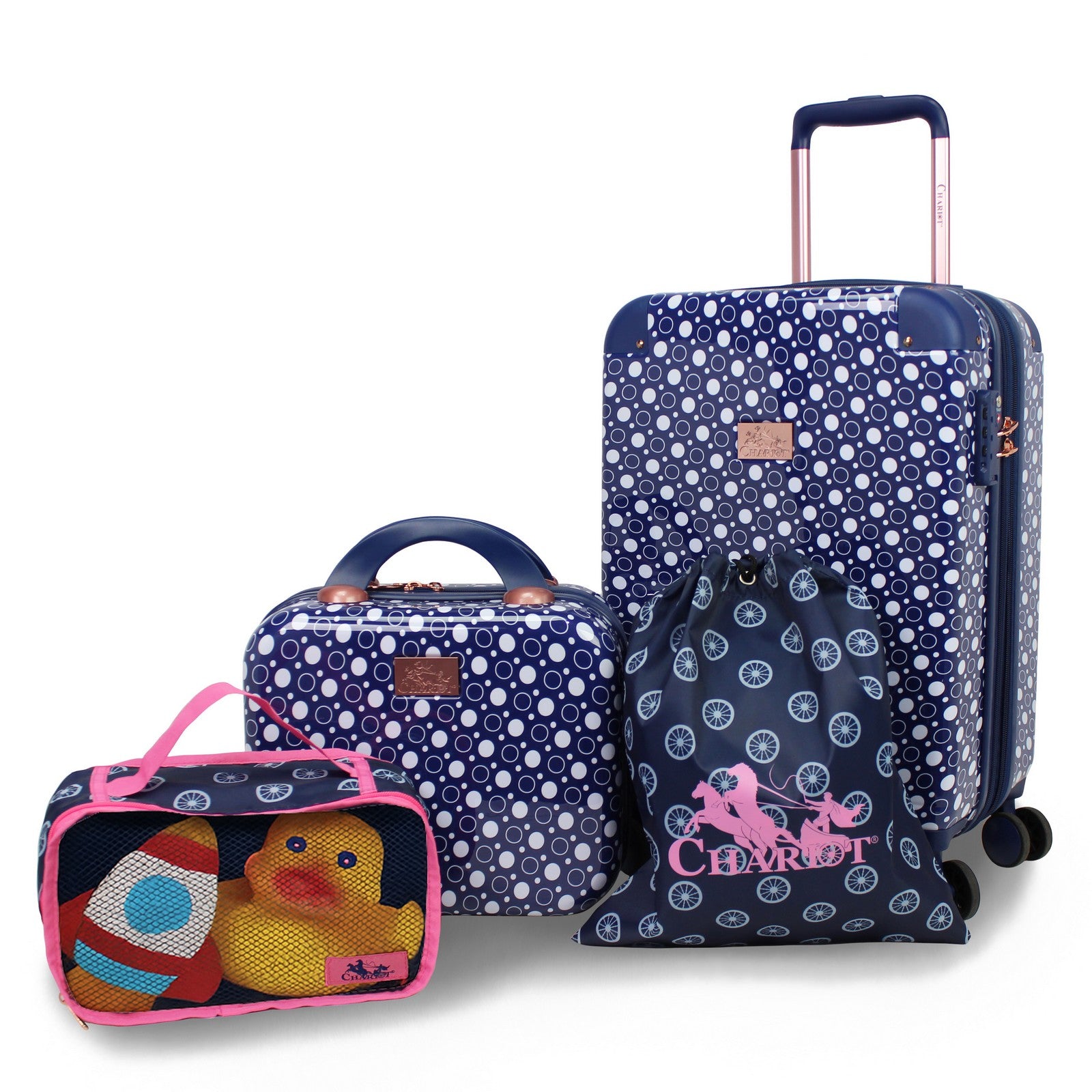 Part of our Chariot Collection - Perfect for Young Travelers – Complete 4-piece luggage set includes a 20-inch carry-on spinner, matching travel case, and two coordinating accessory bags for organized adventures.