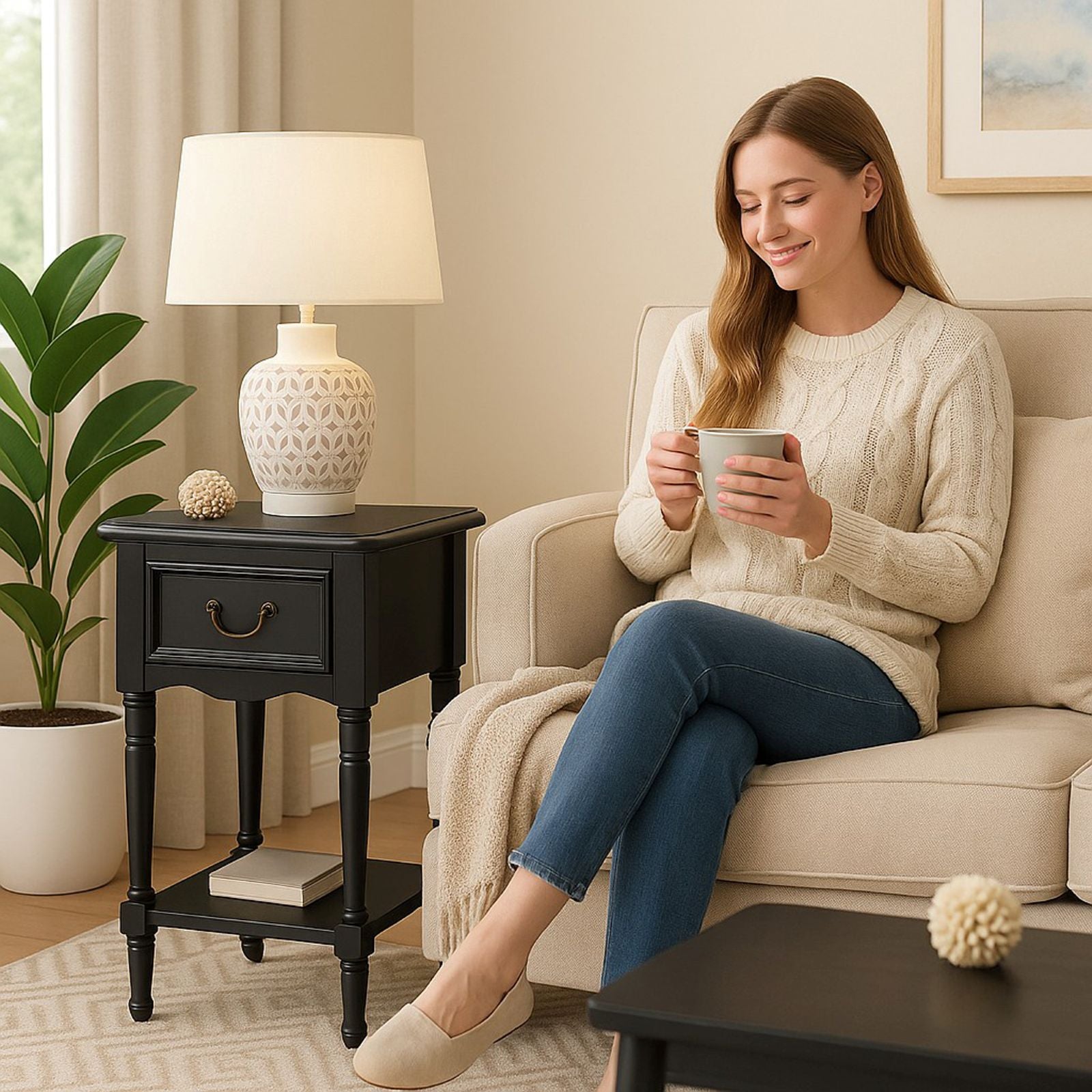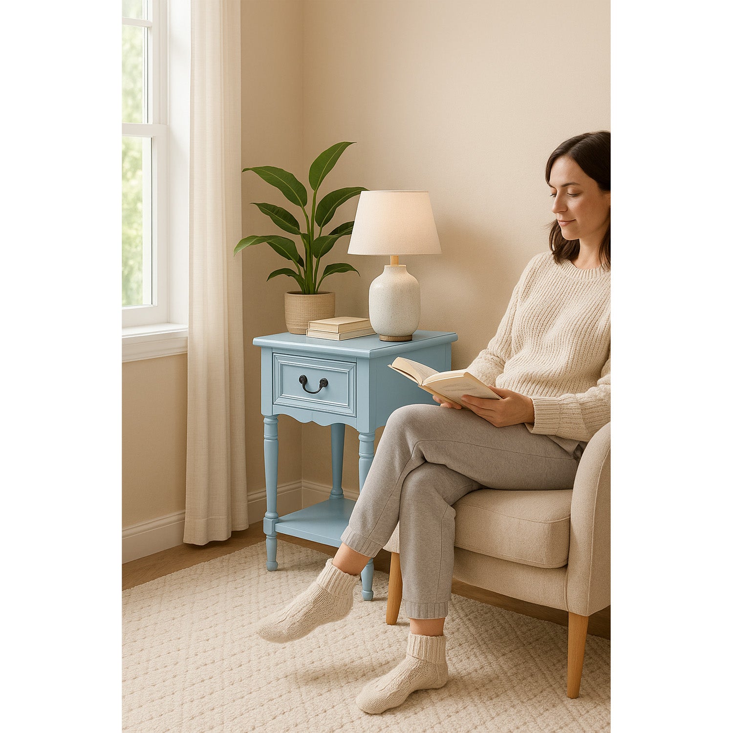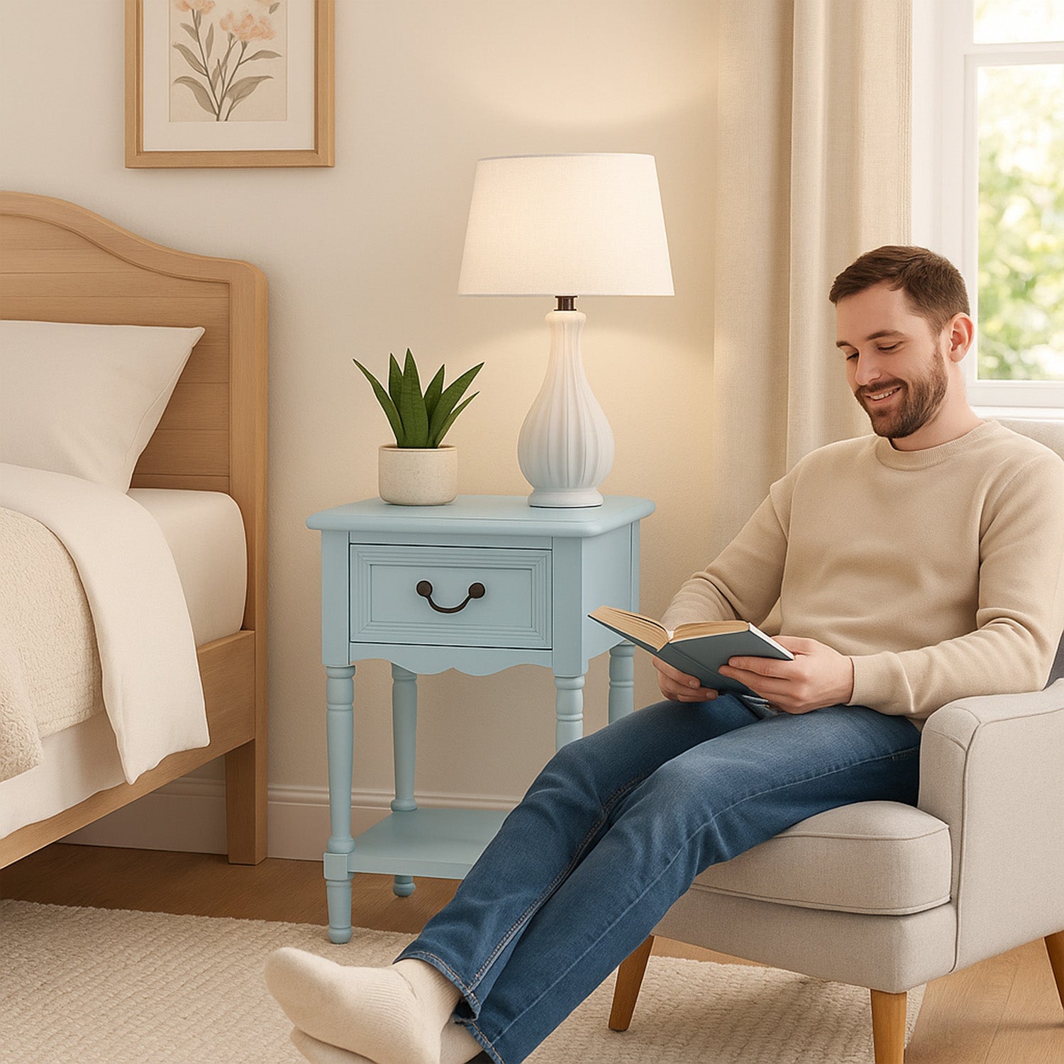 Bring timeless charm to your bedroom or living space with this beautifully crafted accent table nightstand, inspired by the refined elegance of late 18th-century French design. Its clean lines, square silhouette, and hand-painted finish echo the classical styling of the period while offering modern-day versatility. Each piece is expertly made from solid hardwood and MDF material and finished with a hand-applied, multi-step distressing technique, giving it a unique, antique character that adds warmth and authenticity to any room.
