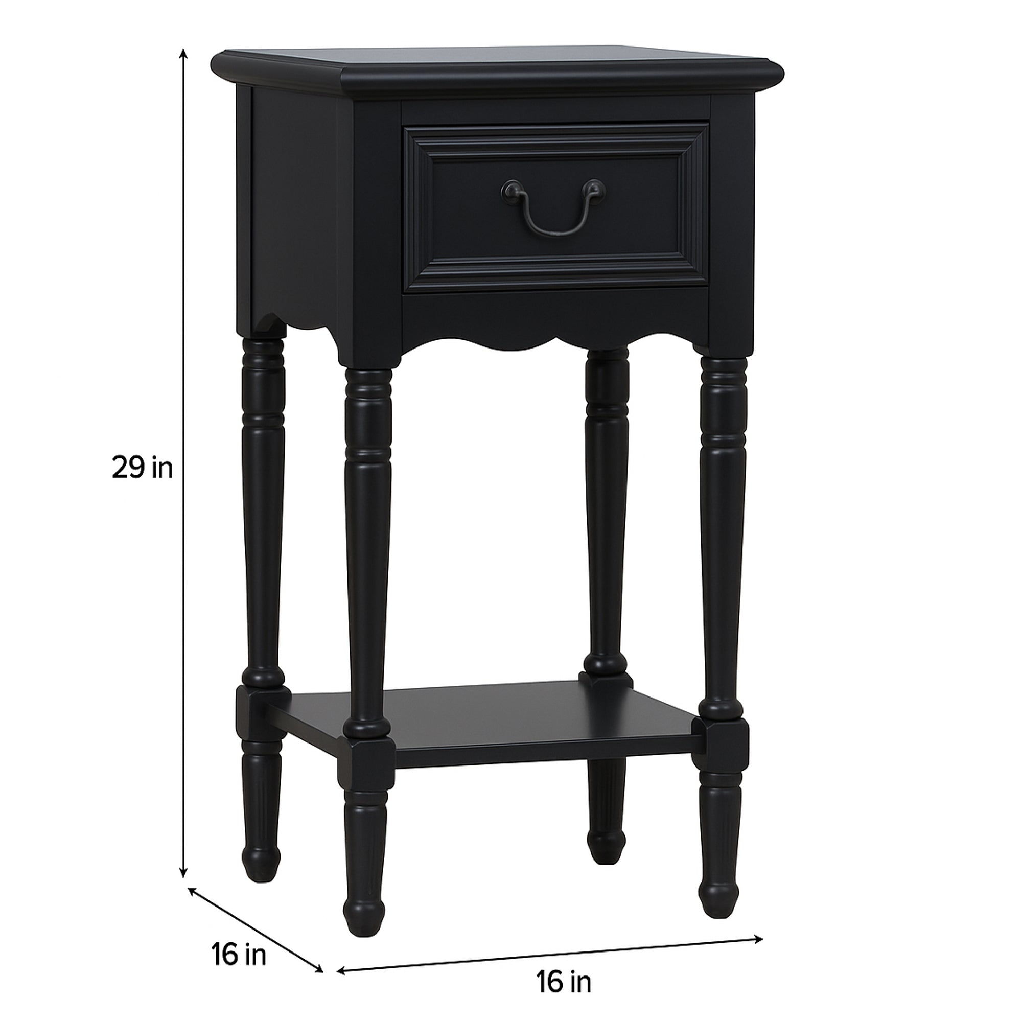 (Drawer Dimensions: 11.5" L x 10" W x 4.5" H) - (Bottom shelf Dimensions: 14" x 14")