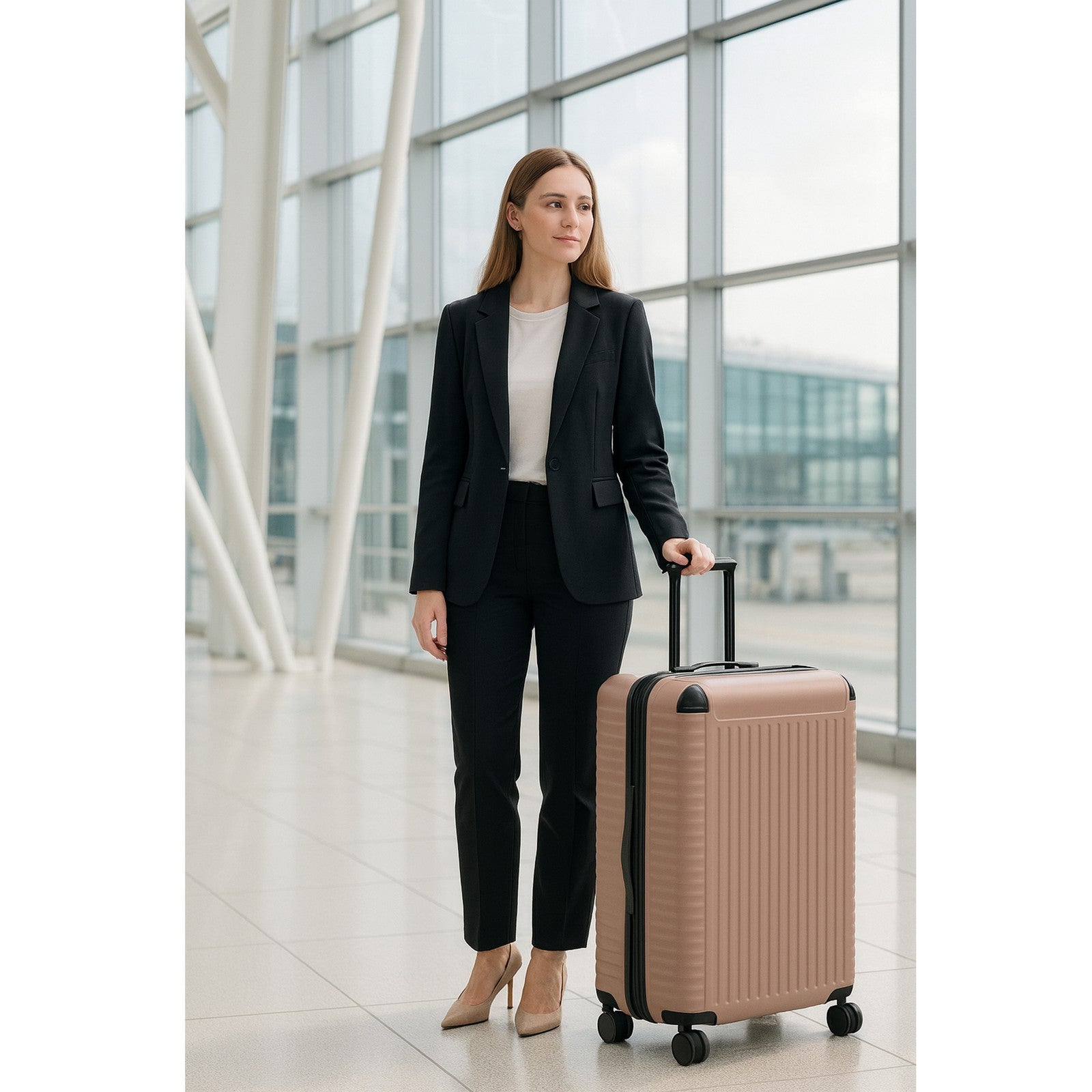 Convenient Lifting Options – Equipped with sturdy carry handles (top and side on larger pieces, top handle on carry-on) and front top corner protectors for added durability during travel