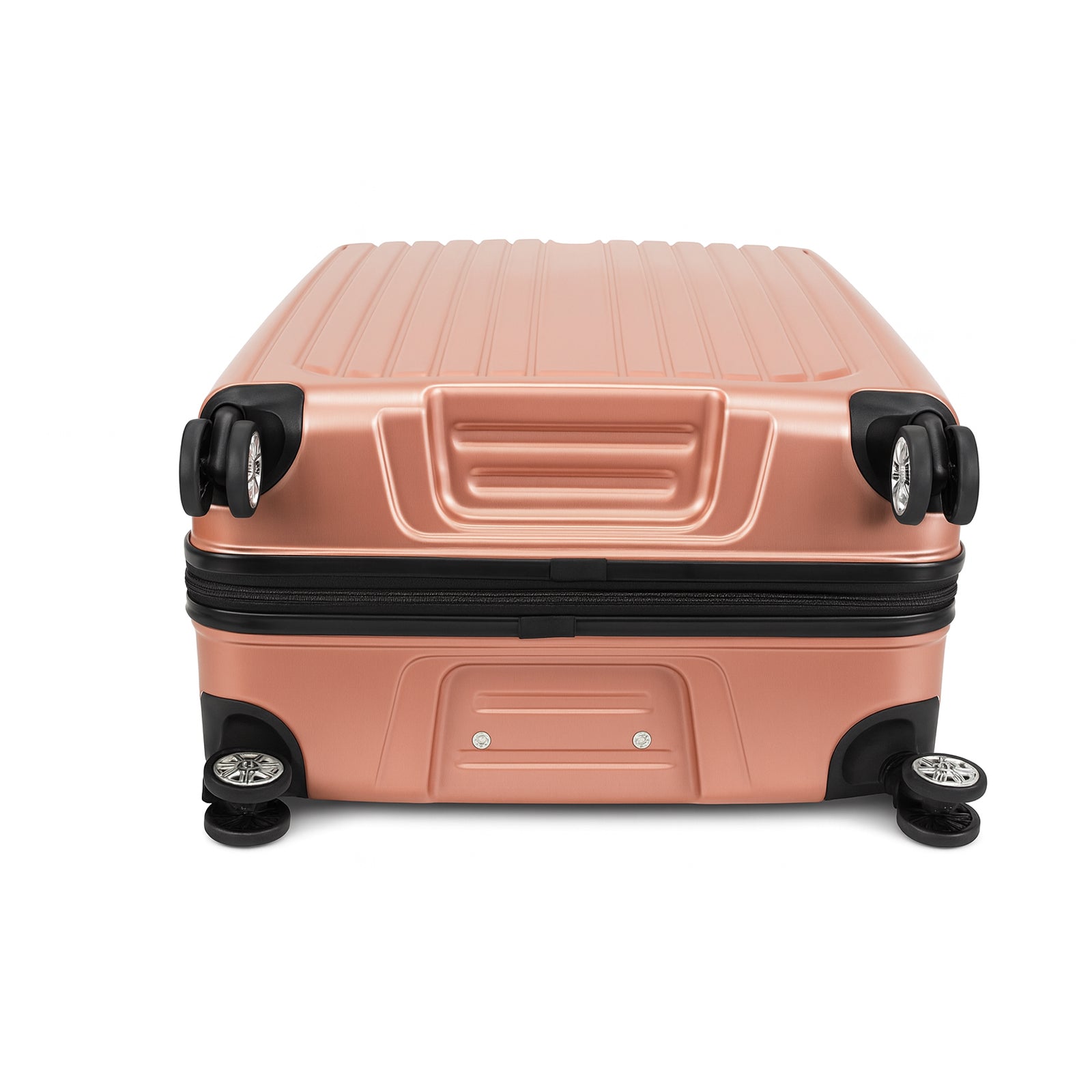 Designed for today’s modern traveler, this sleek luggage is constructed with durable, scratch-resistant ABS material that withstands the rigors of travel. The deluxe 8-wheel spinner system allows smooth 360-degree mobility, making it easy to glide through airports, stations, and city streets.