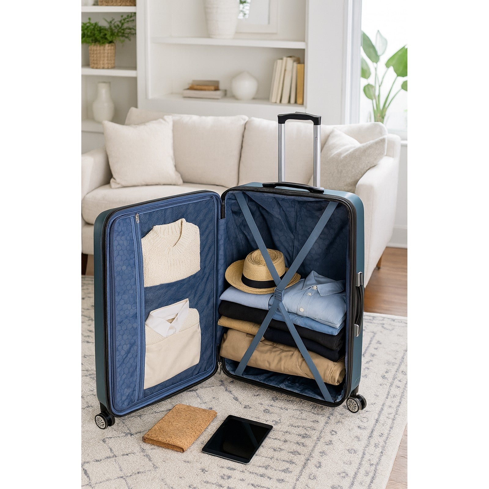 Smooth 360° Spinner Wheels: Each piece features an 8-wheel spinner system, a telescopic handle, and side/top grip handles for effortless movement in any direction