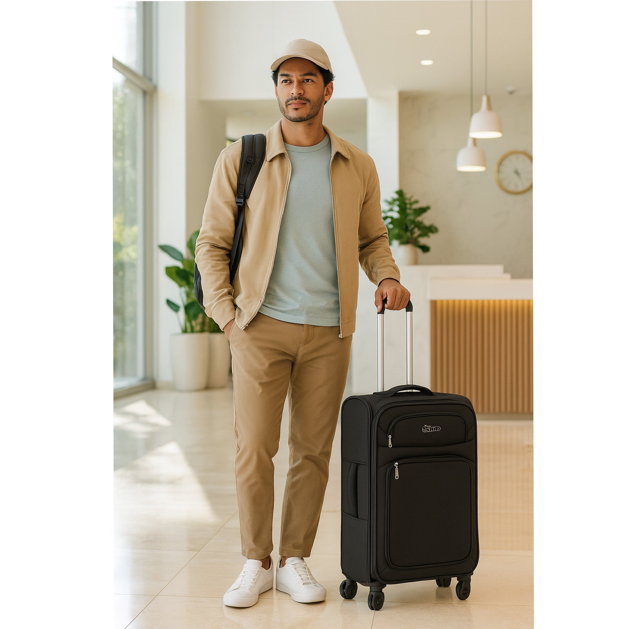 Smooth 360° Mobility – Equipped with eight spinner wheels and a telescopic handle for effortless maneuvering, plus top and side carry handles for easy lifting