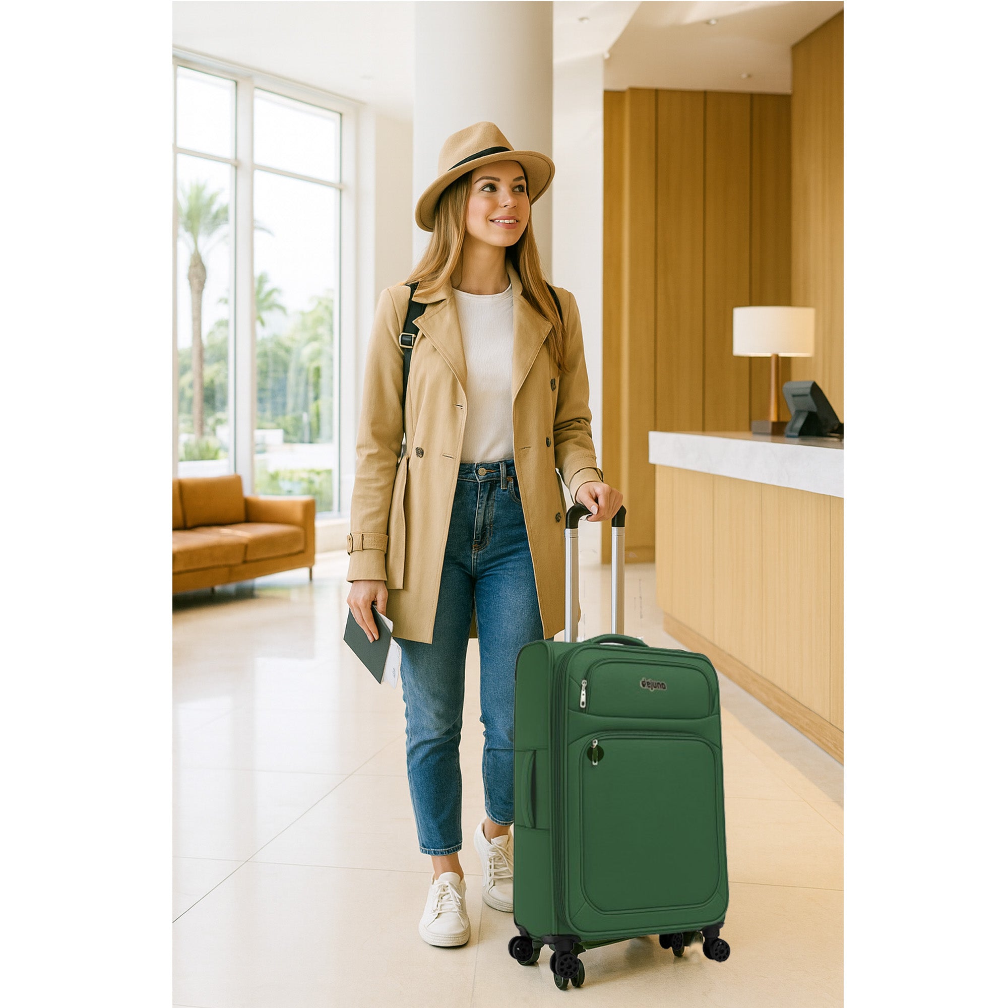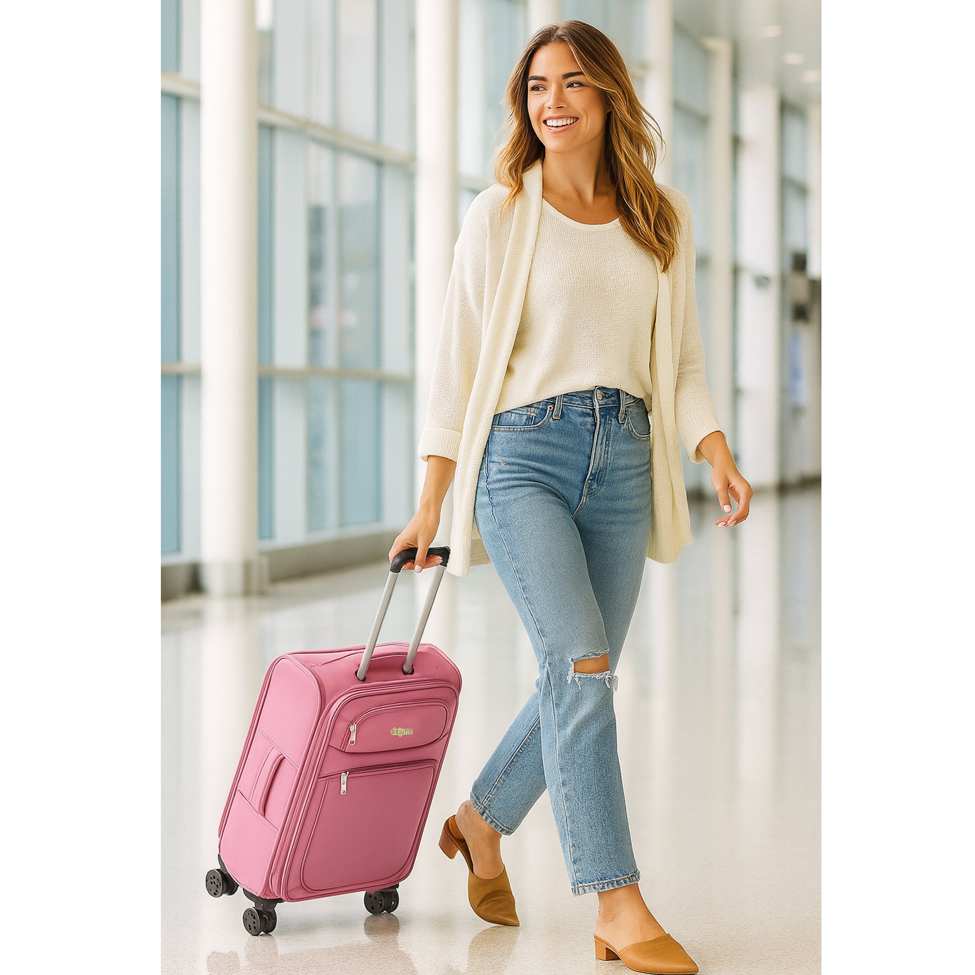 Travel with style, comfort, and confidence using this high-density polyester luggage. Built for durability and ease of use, the exterior material is lightweight yet strong, resisting wear while maintaining a polished look. The telescopic handle and smooth eight-spinner-wheel system ensure effortless 360-degree maneuverability through airports, train stations, and city streets. For added convenience, each piece includes top and side carry handles for easy lifting. When you need extra packing space, the expandable design adds up to 2 inches without compromising stability. The two front zipper pockets are perfect for storing items you need on the go, such as travel documents or electronics. Inside, the fully lined interior features a large zipper pocket that provides storage for smaller items, while adjustable webbing tie-down straps secure clothing in place, helping to reduce wrinkles during travel. With vibrant colors that make your luggage easy to spot on busy airport carousels, this set is as practical as it is stylish — ready to accompany you on short getaways or extended adventures.