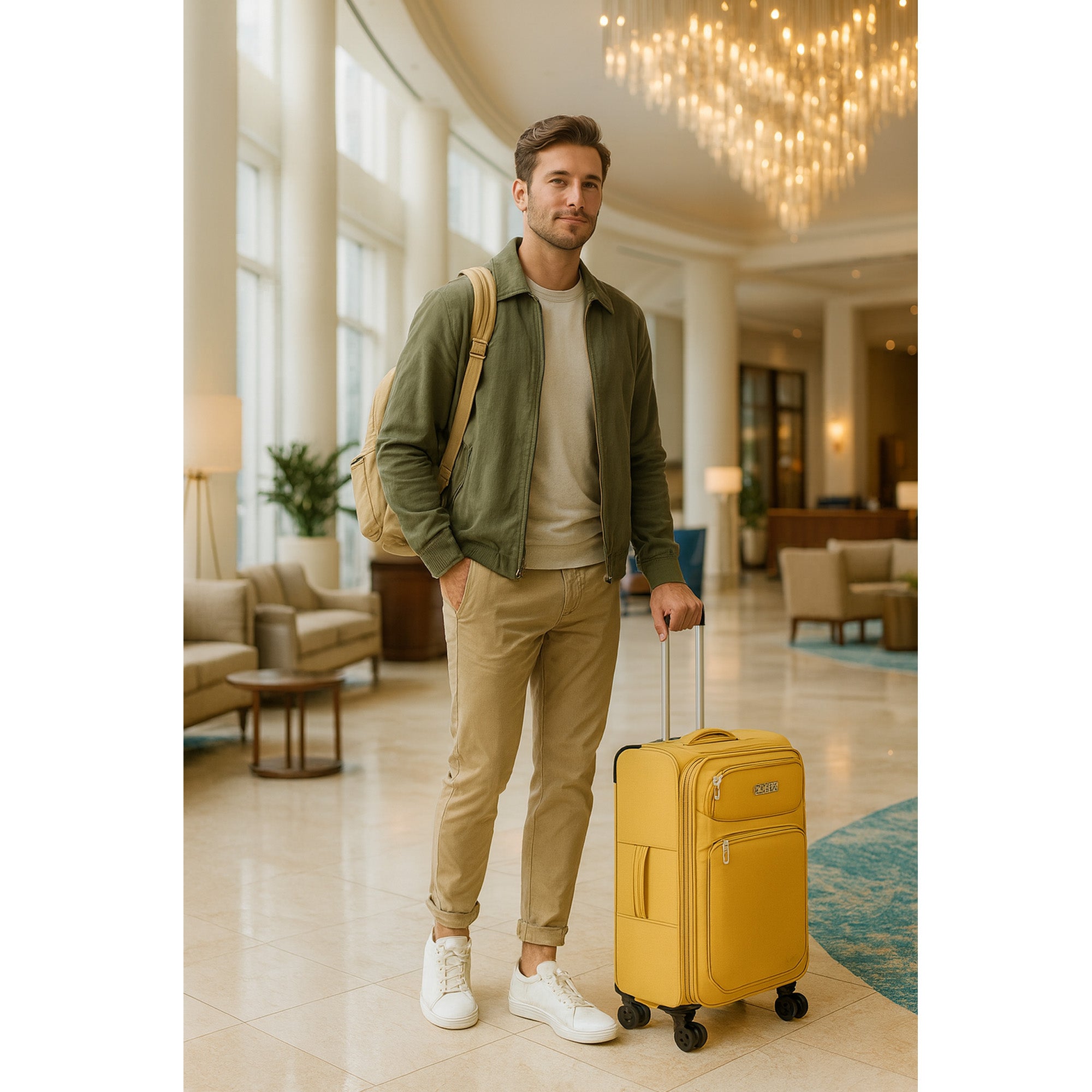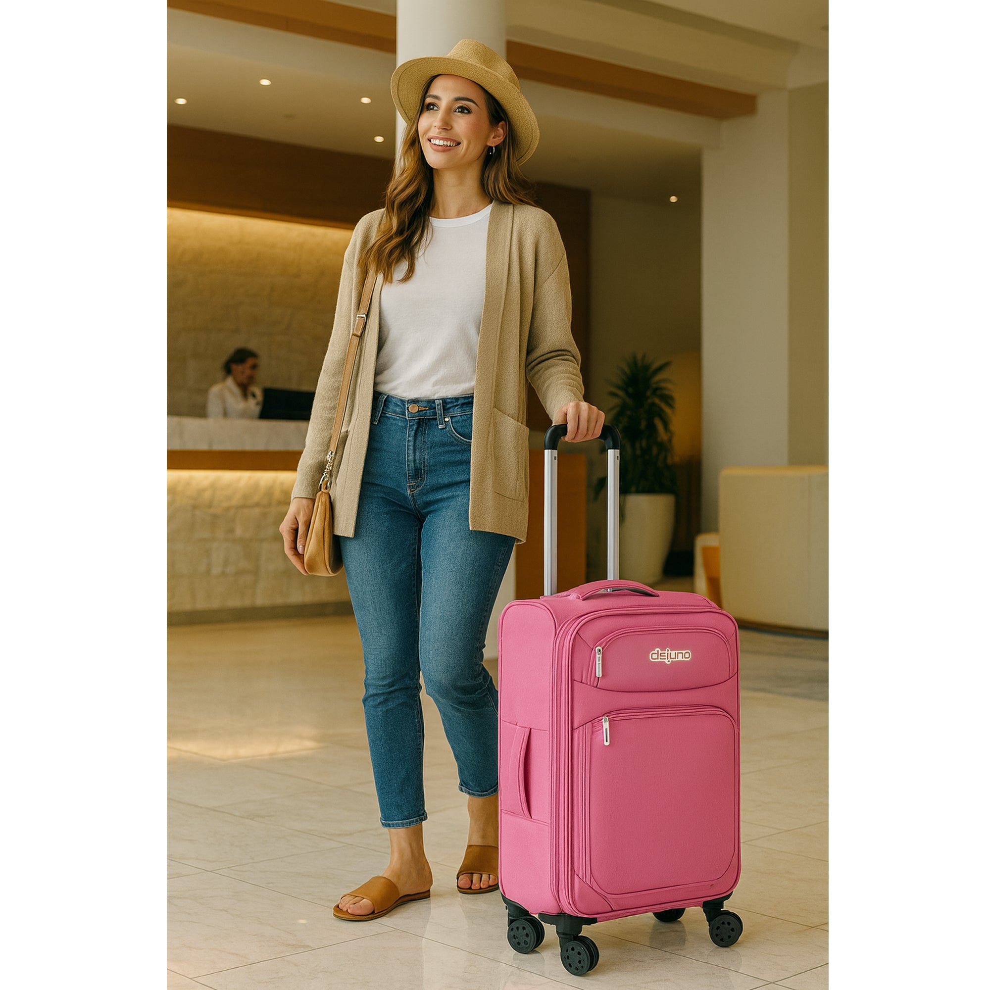 Vibrant & Organized Interior – Bold, eye-catching colors make your luggage easy to spot, while two front zip pockets and a fully lined interior with a large zipper pocket and tie-down straps keep essentials secure and organized