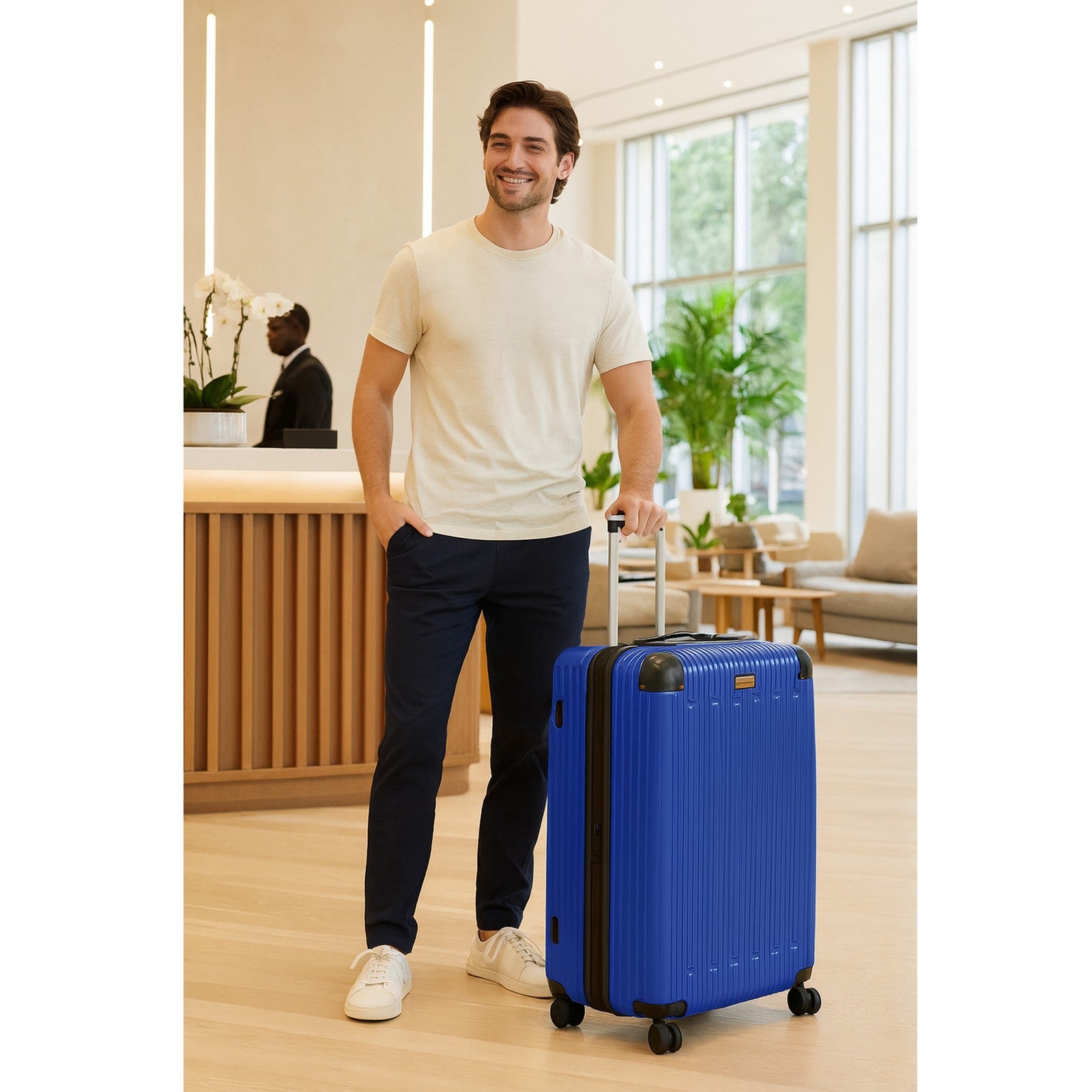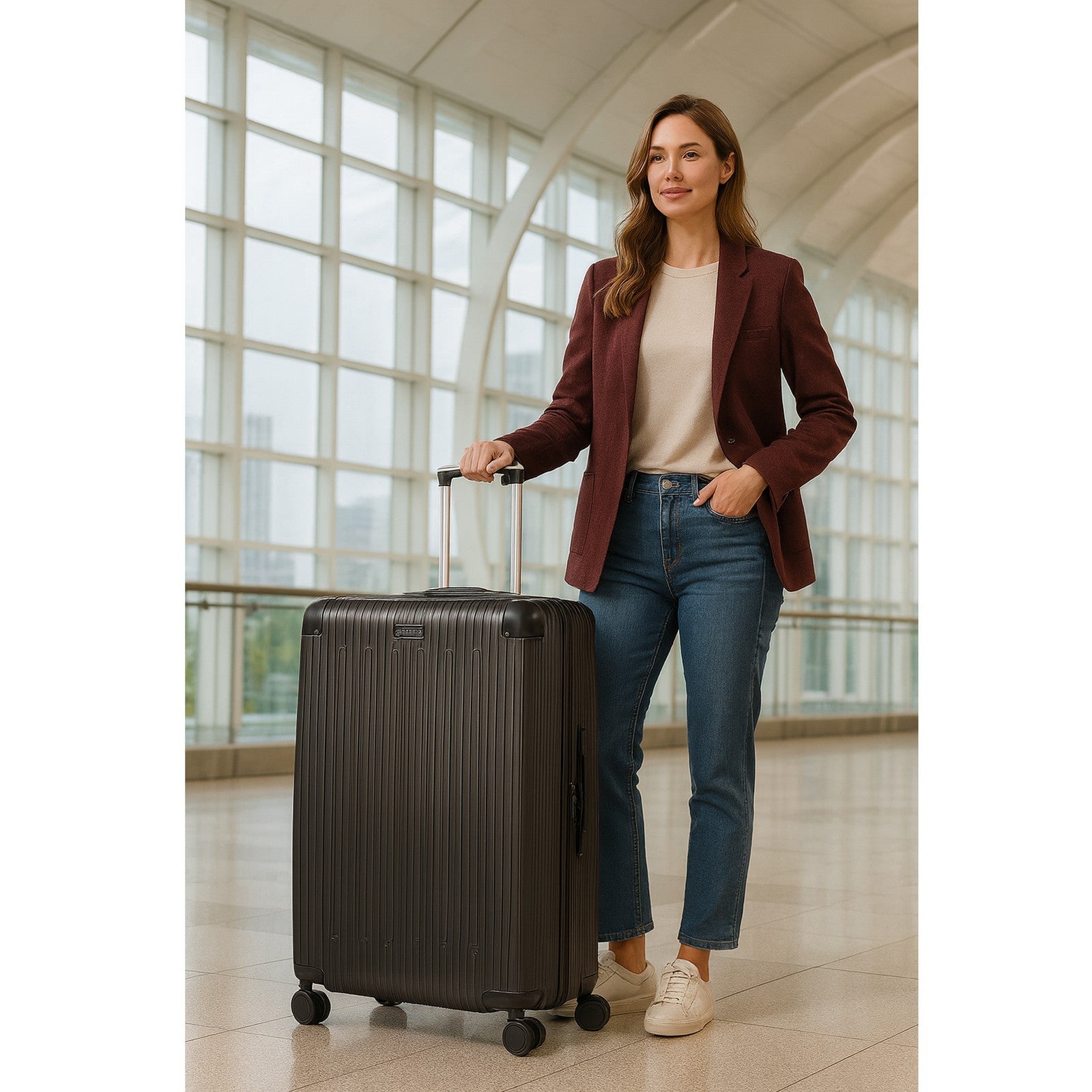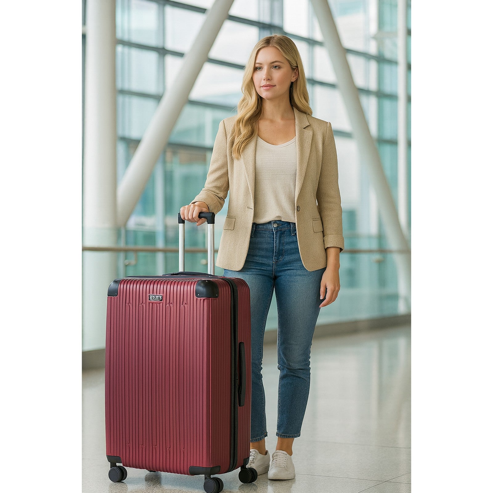 Durable & Scratch-Resistant Shell: Made from tough ABS material, this luggage is designed to withstand the rigors of travel while maintaining a sleek, modern appearance