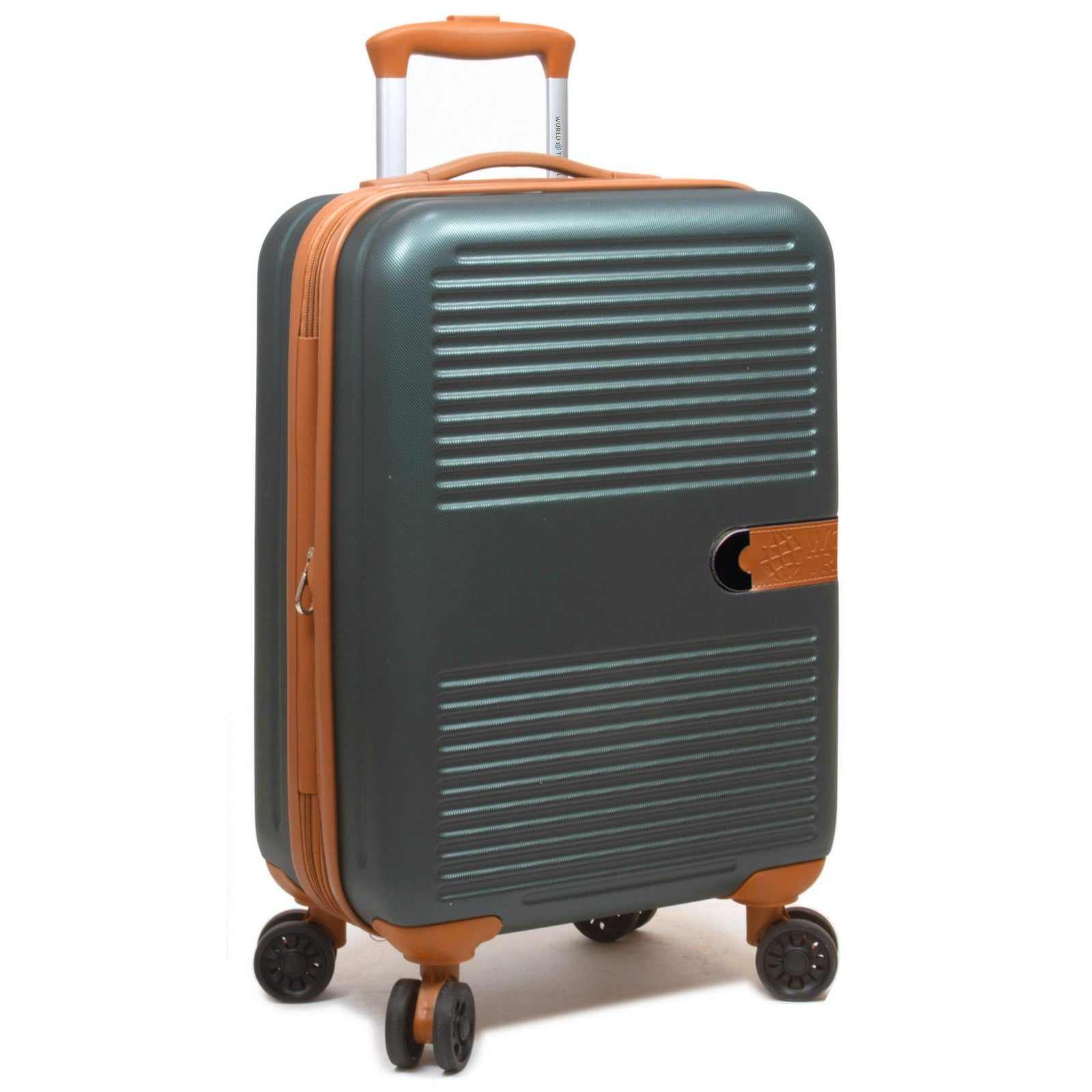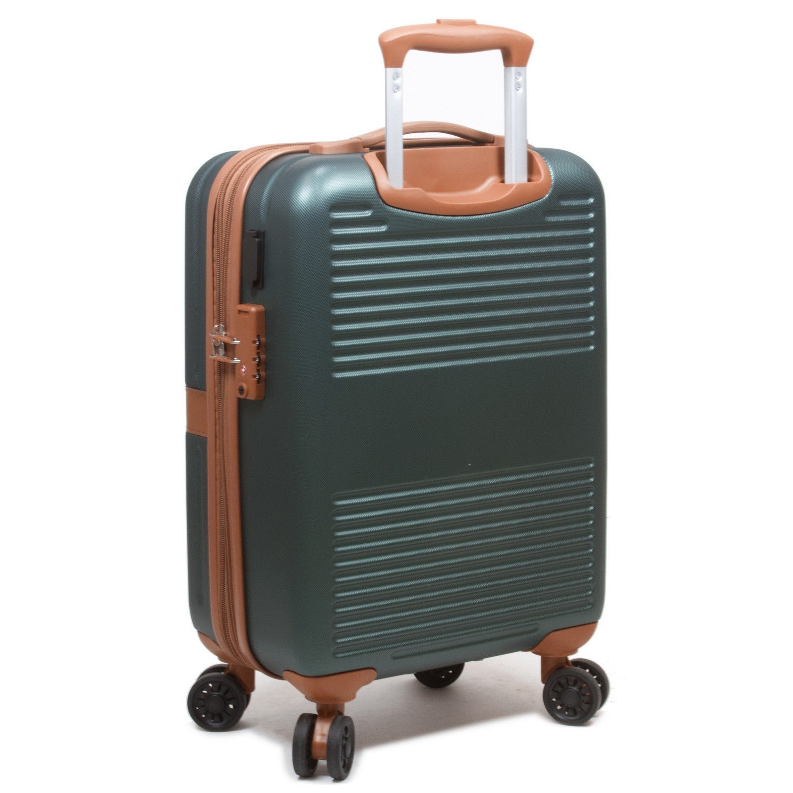 Carry-On luggage features two built-in USB ports and interior 7"x3.5" power bank pocket(power bank not included), Scratch-resistant ABS construction, push-button telescopic handle, Deluxe 8 wheel design for 360° navigation