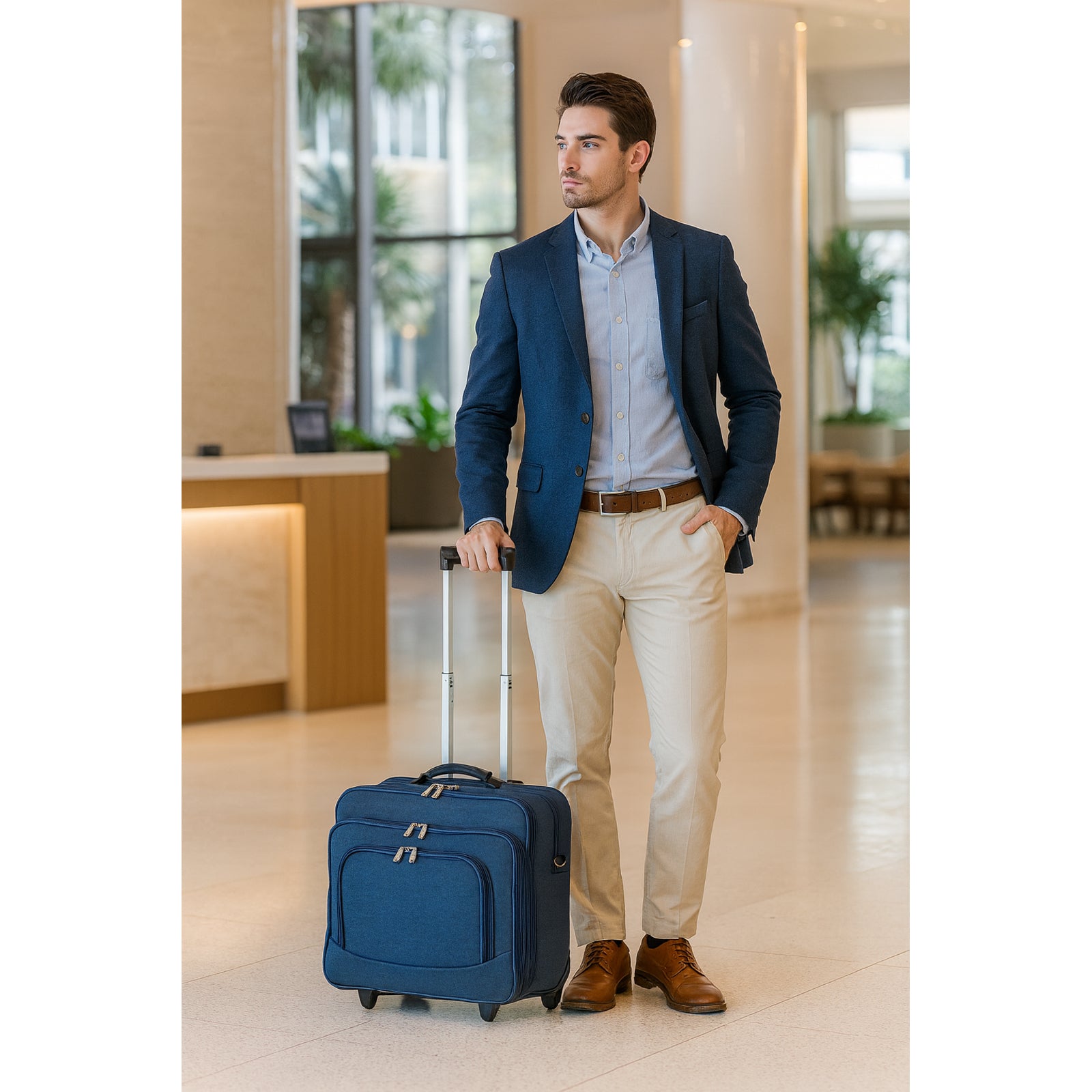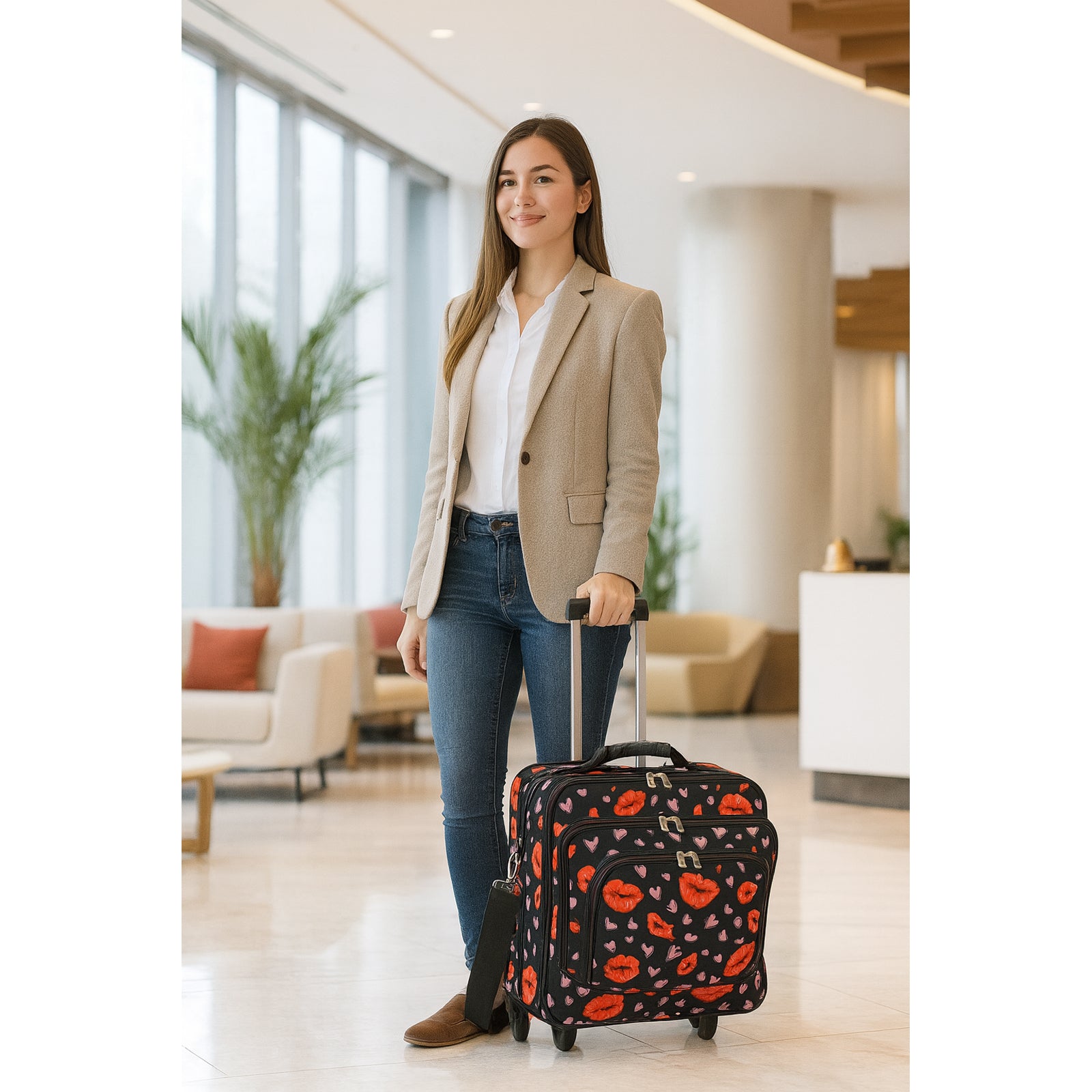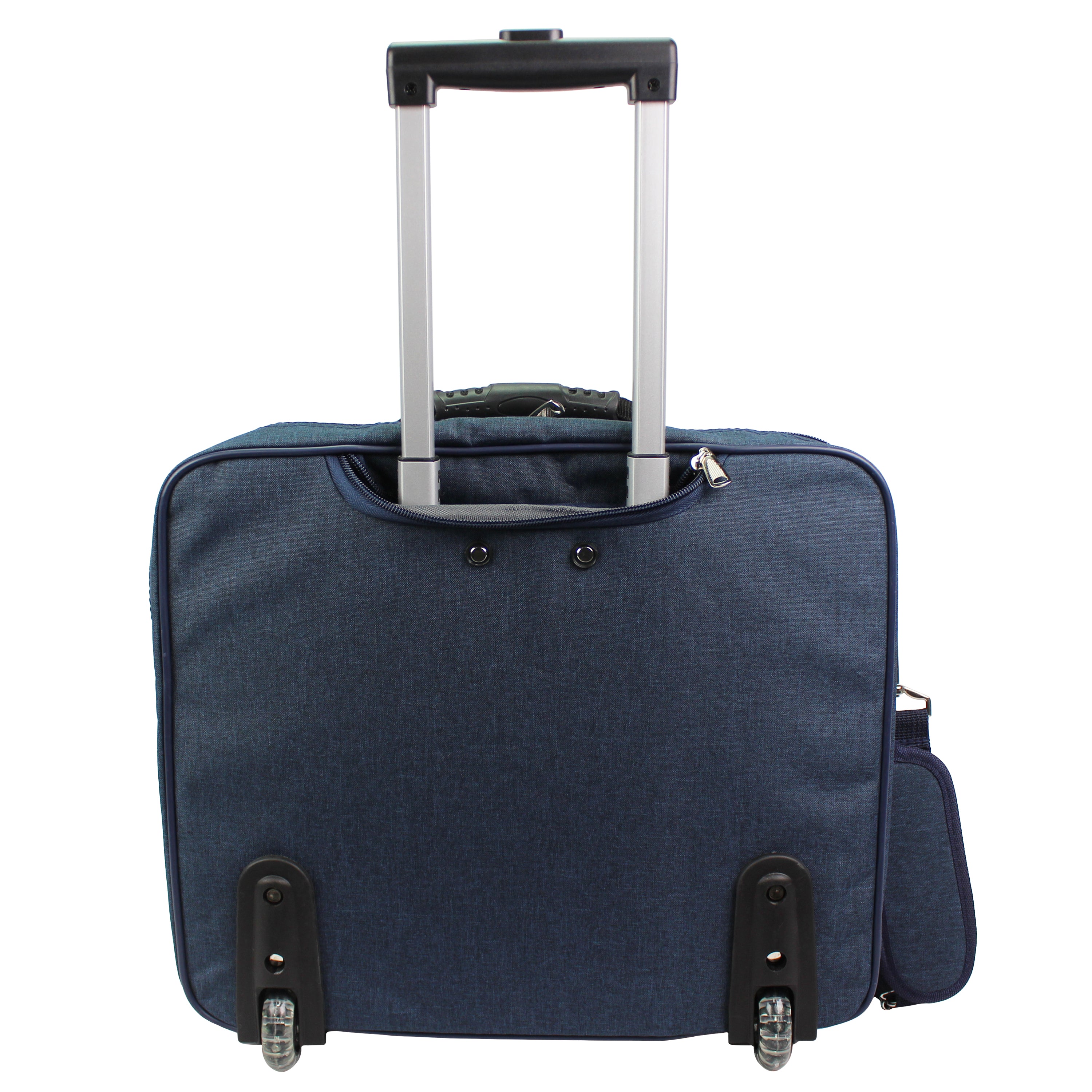 An ideal rolling carry-on computer case with plenty of space for your daily essentials. Clean lines, sophisticated style, fashion colors and exteriors designed to go anywhere you want. This fashion rolling computer case features a dual gusset design and a fully padded main compartment that can fit laptos up to 17-inches. Its exterior features In-line skate wheels, a telescopic handle adjustable and removable shoulder strap, velcro straps to hold laptop in place, and a back compartment with fan file.