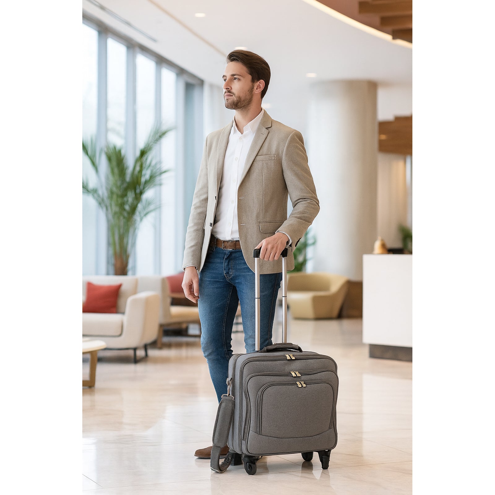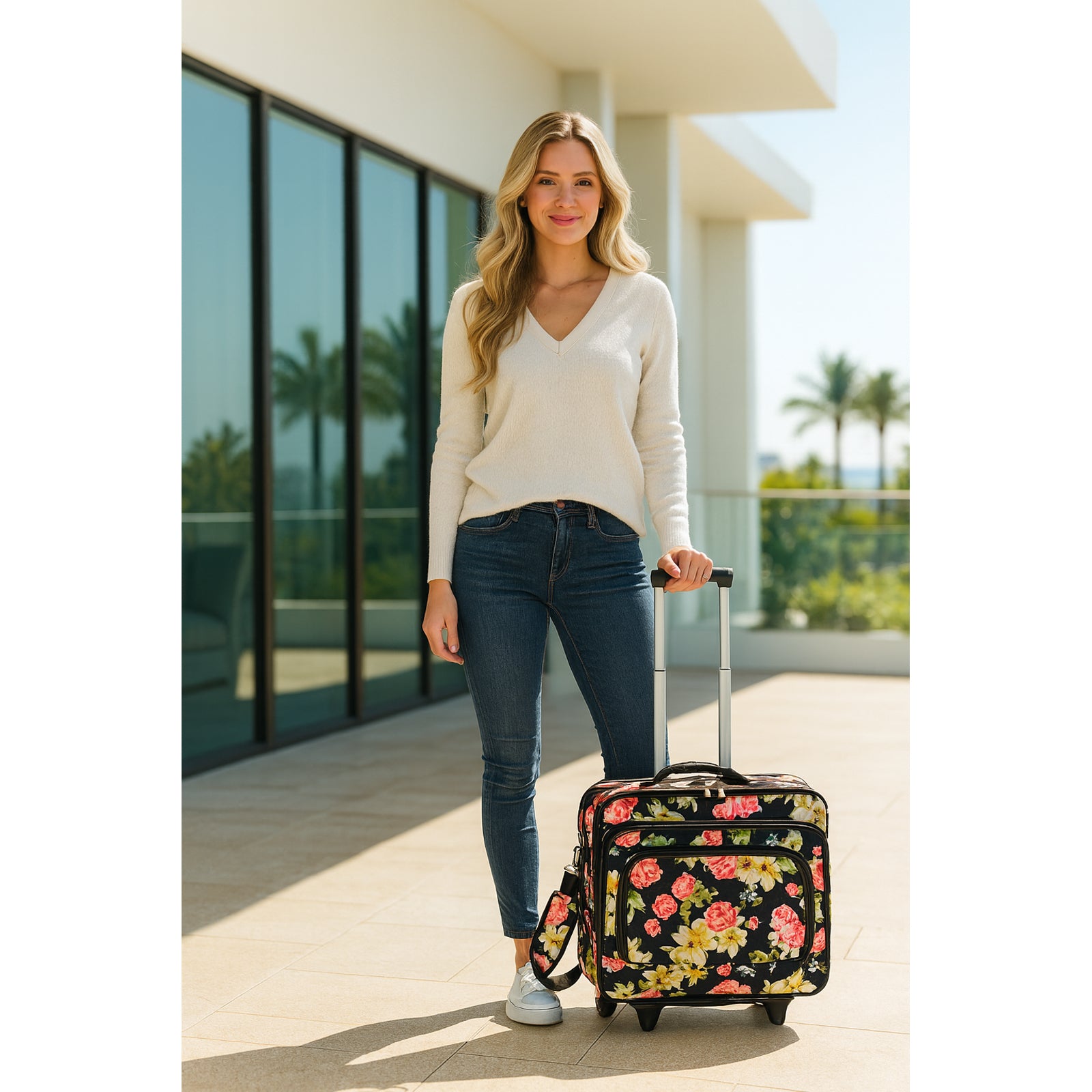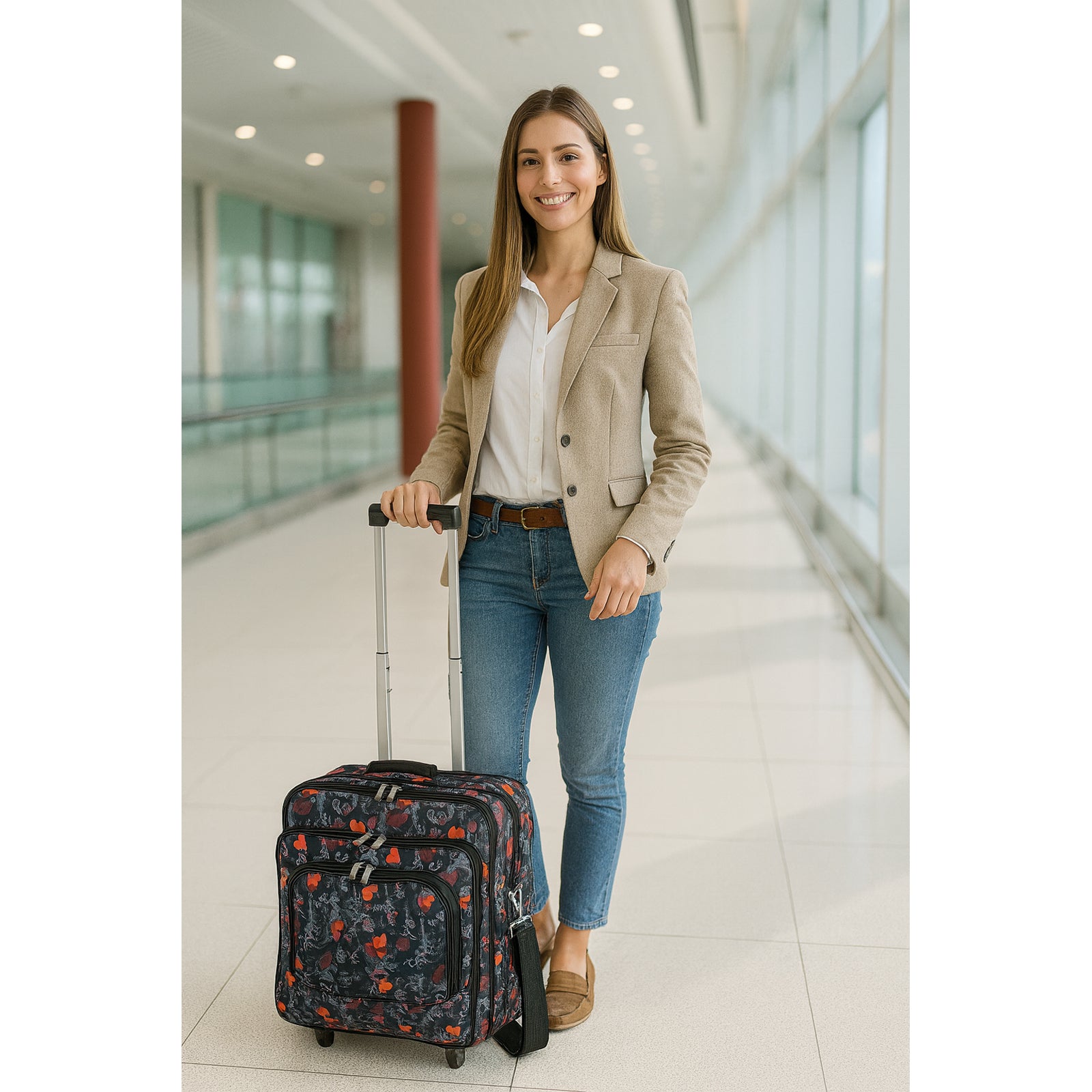 An ideal rolling carry-on computer case with plenty of space for your daily essentials. Clean lines, sophisticated style, fashion colors and exteriors designed to go anywhere you want. This fashion rolling computer case features a dual gusset design and a fully padded main compartment that can fit laptos up to 17-inches. Its exterior features In-line skate wheels, a telescopic handle adjustable and removable shoulder strap, velcro straps to hold laptop in place, and a back compartment with fan file.